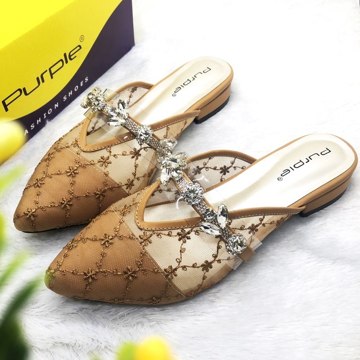 Sandal Brukat Flat Shoes Wedding Wanita Valerina Series Purple Original Big Size Lokal
