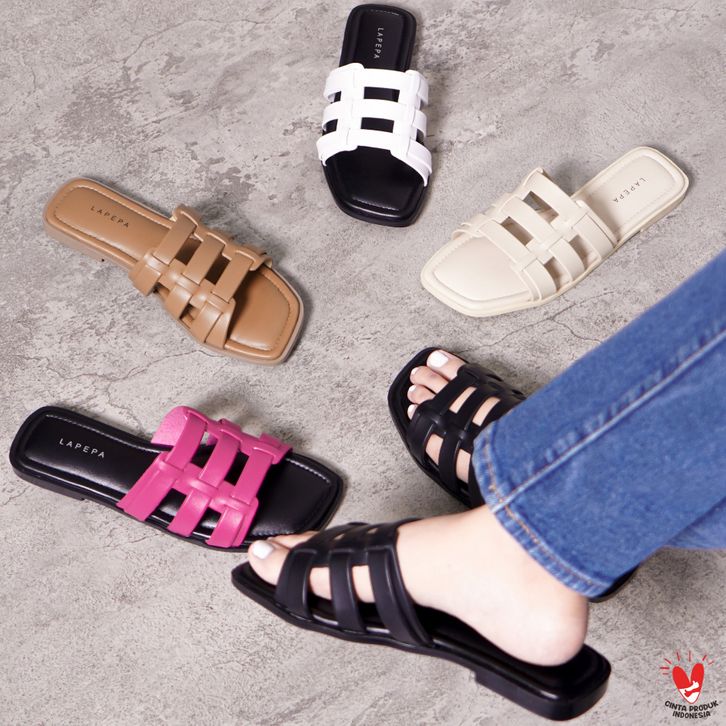 LAPEPA YUK - TESSA Sandal Wanita Teplek Korea Casual Size 36 - 40 Sendal Slop Empuk Flat Cewek Kasual Rumahan Warna Hit