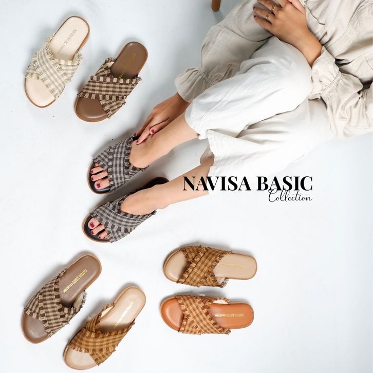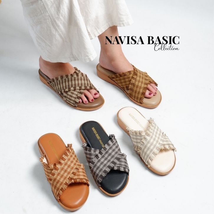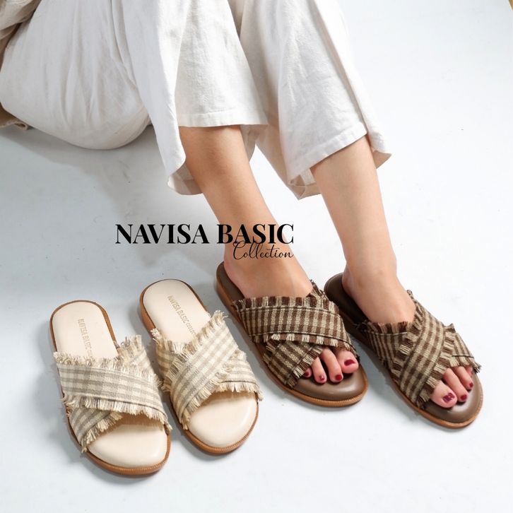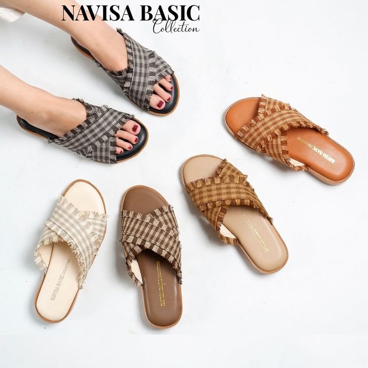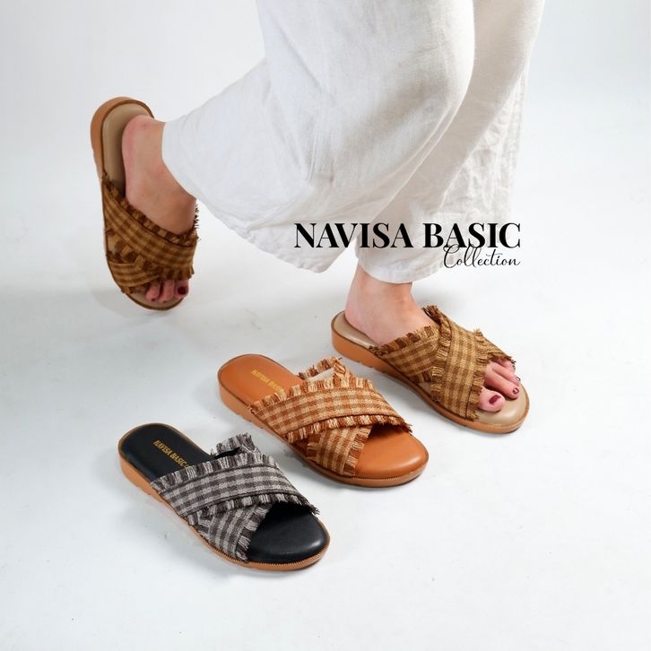 Sandal Wanita Silang Motif Kotak Super Empuk Navisa Basic collection