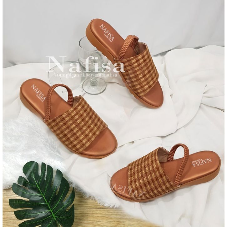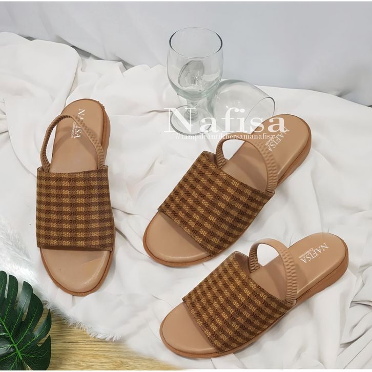 Sandal wanita Empuk Sendal tali wanita Sandal tali belakang Motif kotak Navisa Basic sollection