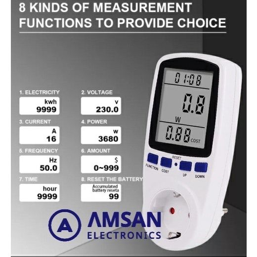 Watt Meter Stop Kontak Pengukur Daya Listrik | Wattmeter KWH Volt Ampere untuk Rumah & Peralatan Elektronik