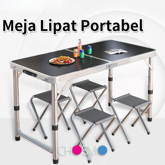 Meja Lipat Portabel Aluminium 120x60 CM Meja Jualan Serbaguna Kaki Bulat Meja Camping Outdoor