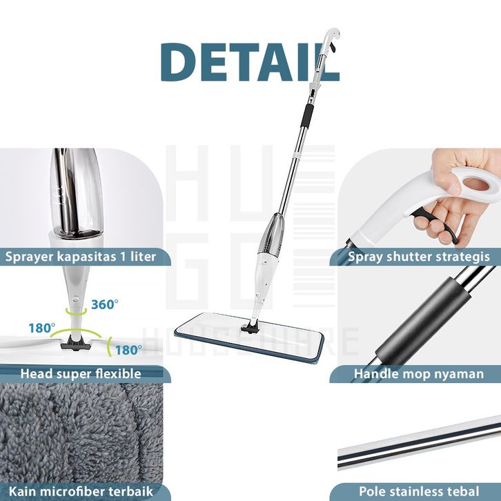 Pel Lantai Ultra Mop Sprayze Pel Lantai Semprot Otomatis Spray Mop White HUGO
