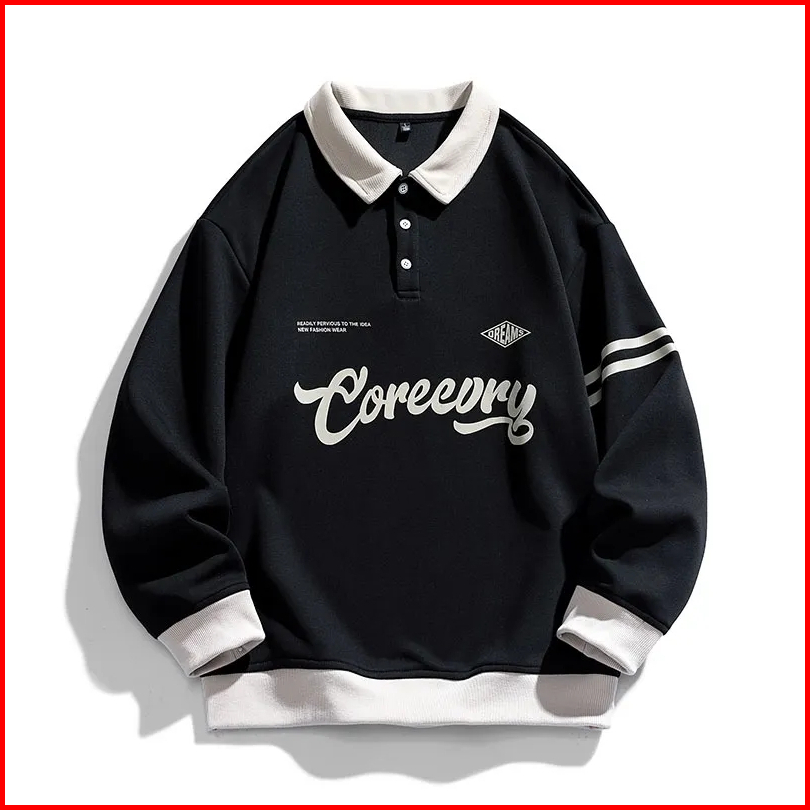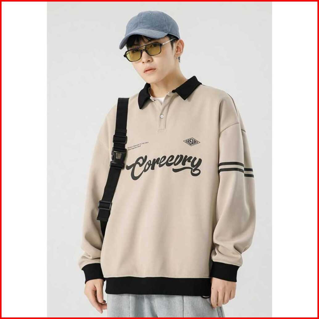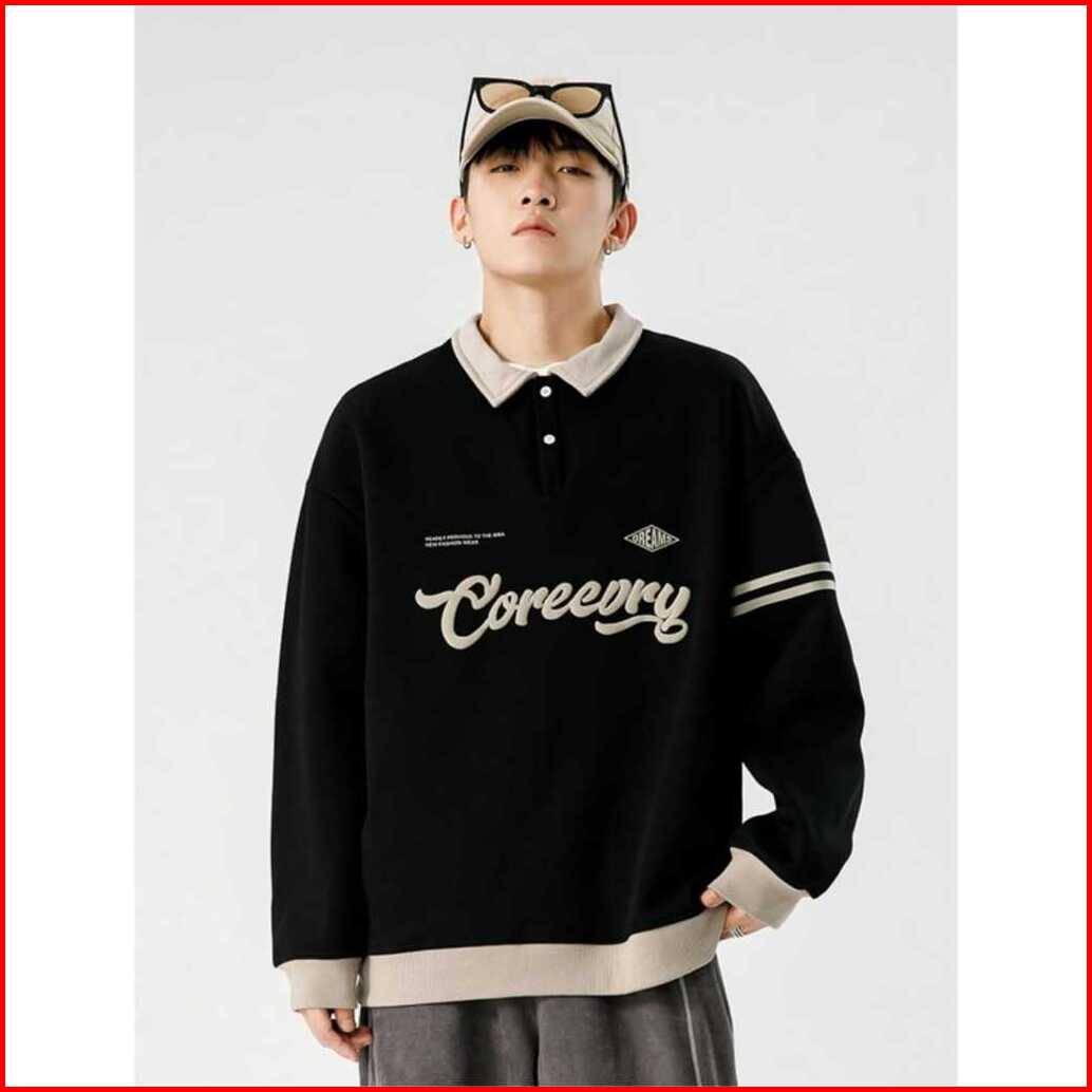 Coreeory Sweater Shirt Rugby Pria Wanita Trendy