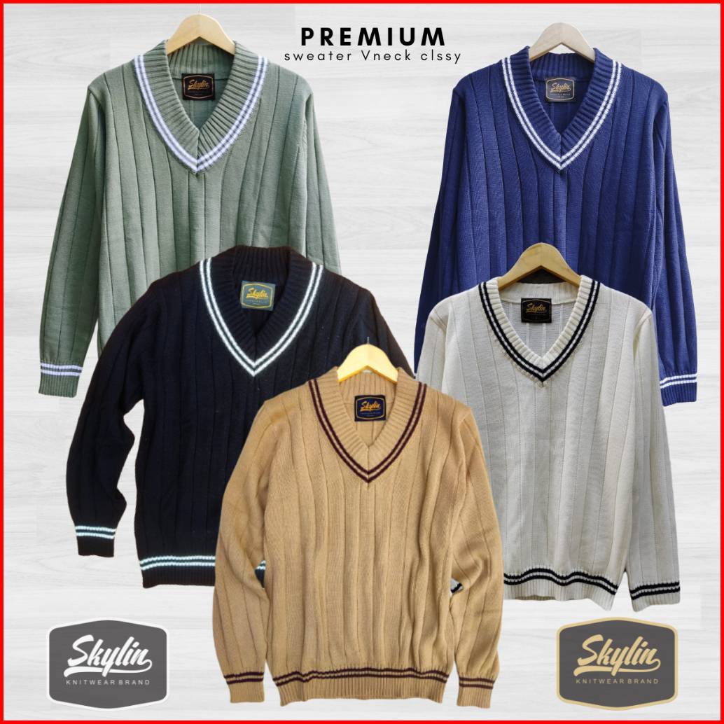 Vneck Classy Long Sleeve Skylin - Sweater Vneck Pria Wanita Premium