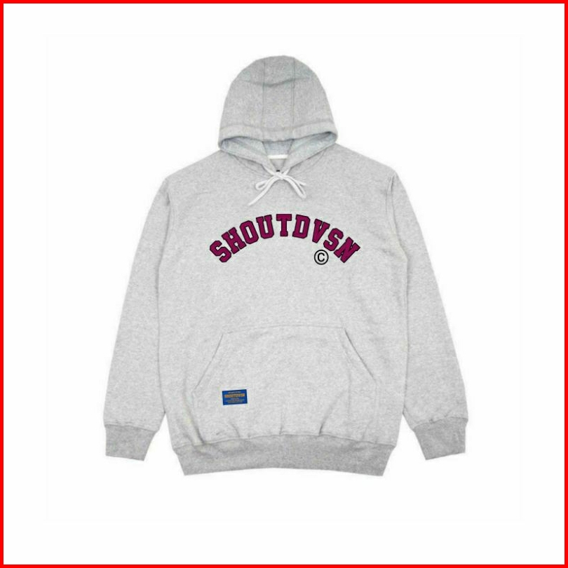 Hoodie Shoutdvsn Grey Magenta Sweater Distro Unisex Pria Wanita