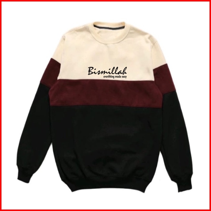 Sweater Big Size Pria Wanita Bismilah Kombinasi Terbaru M L Xl Xxl 3xl 4xl 5xl Crewneck Jumbo