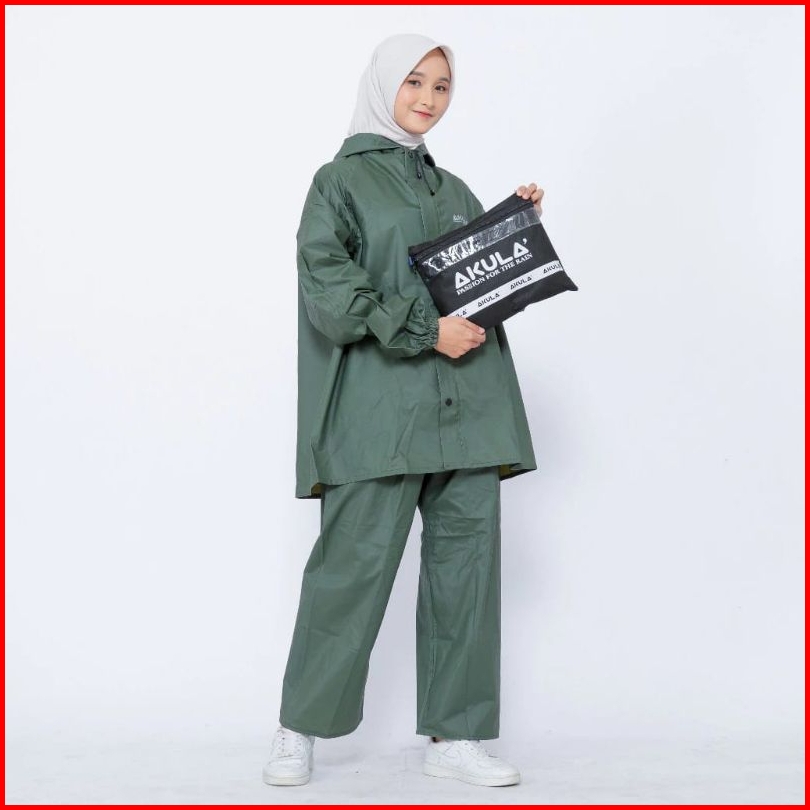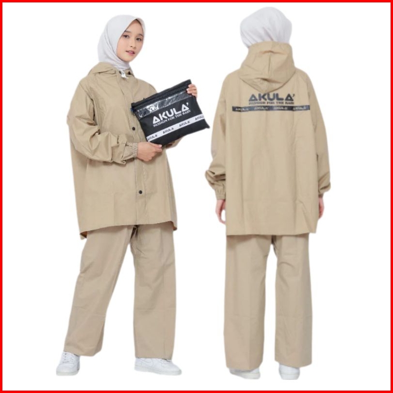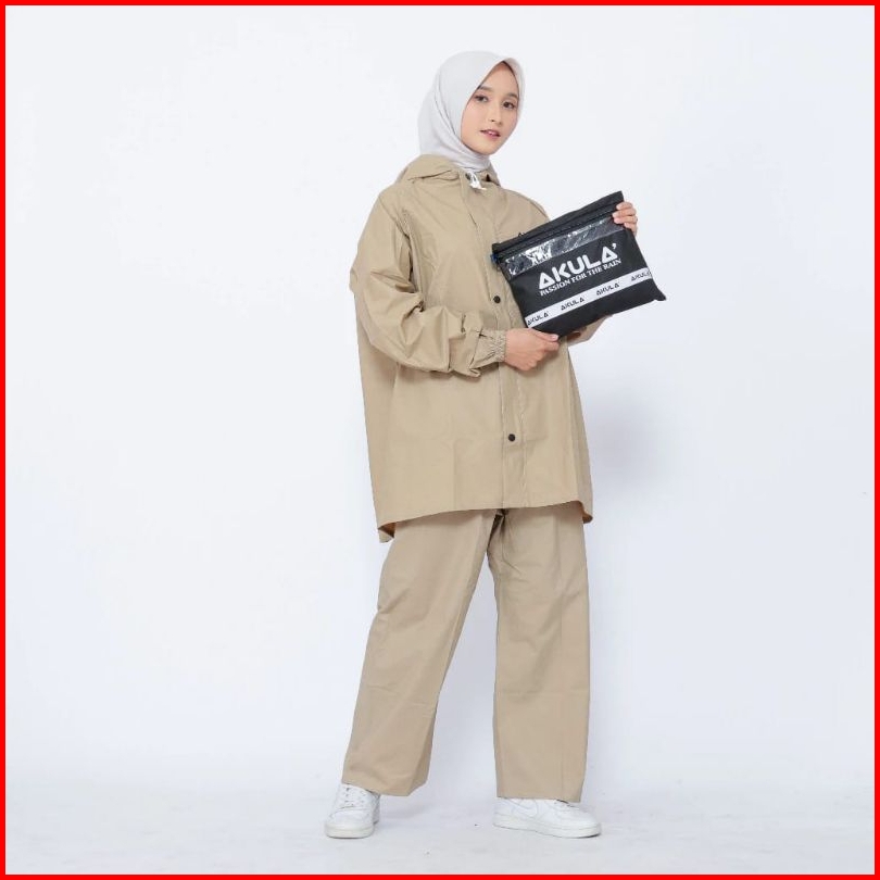 Akula Jas Hujan Pria Wanita Bahan Tebal Kuat Elastis Anti Rembes Krem Beseller