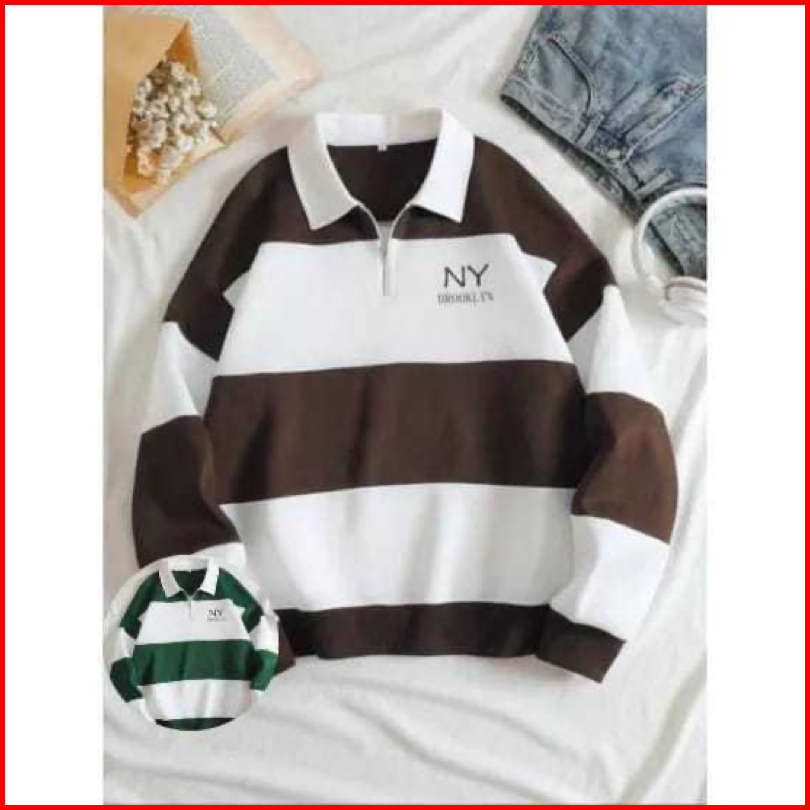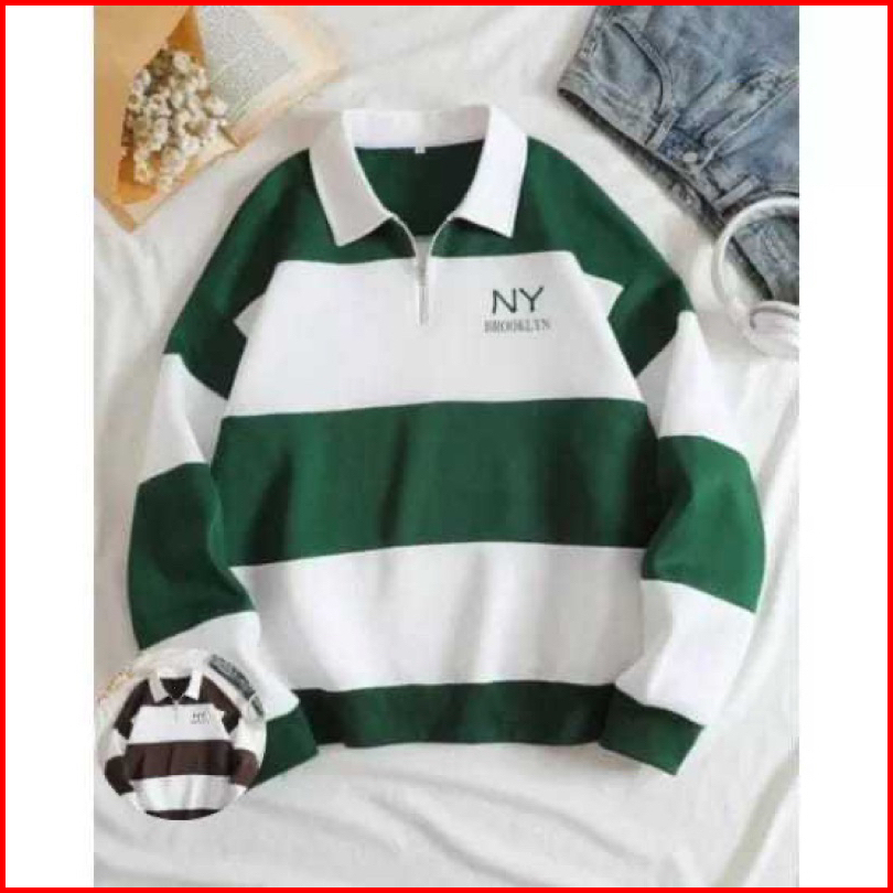 Jaket Rugby Hoodie Salur Terbaru Sweater Kerah Crewneck Ny Brklyn Pria Wanita