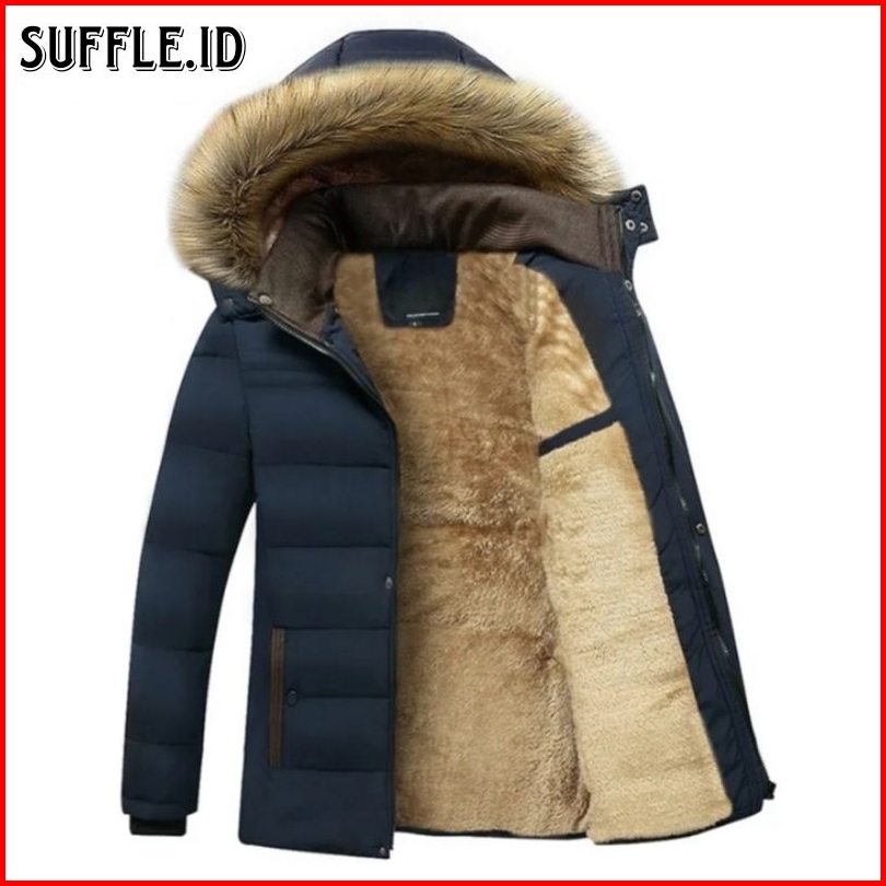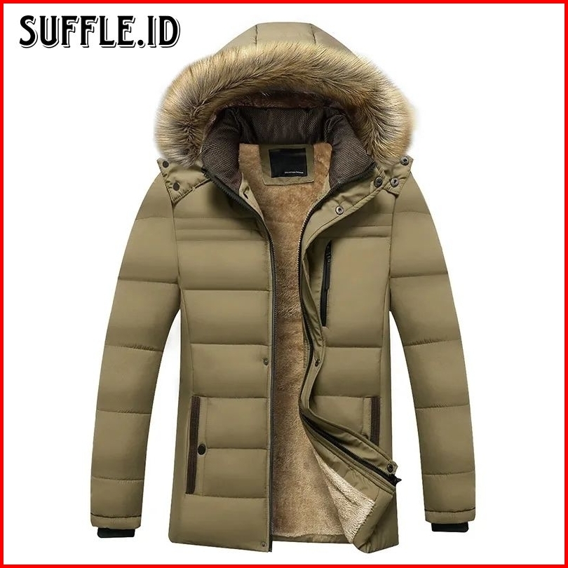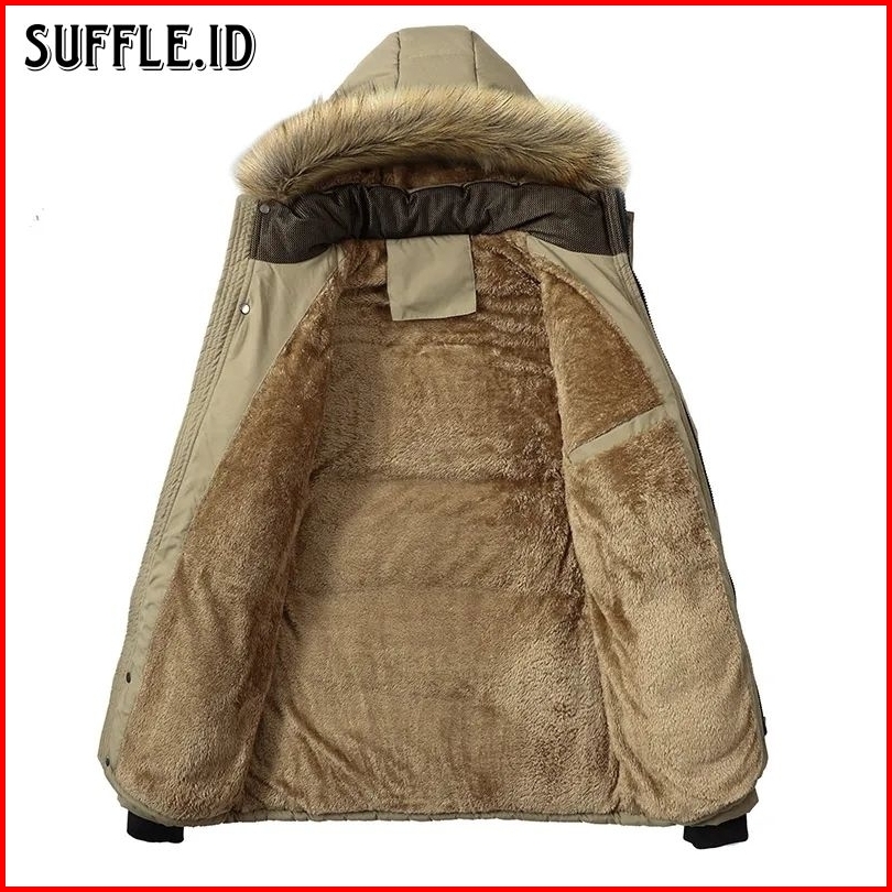 Suffle.id Jaket Winter Hoodie Daleman Bulu Jaket Winter Musim Dingin Jaket Tebal Mantel Bulu Halus Pria Wanita