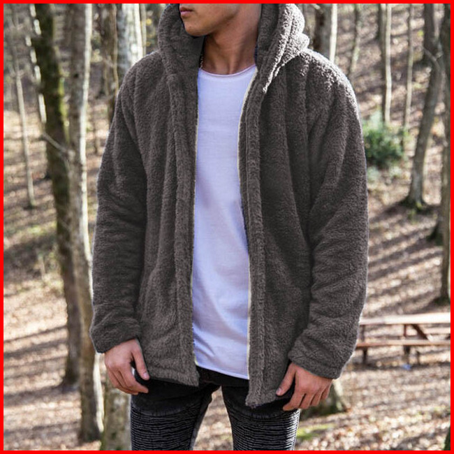 Jaket Hoodie Bulu Pria Polos Jaket Sherpa Pria Hoodie Bulu Domba Imitasi Unisex Cowok Cewek Wanita