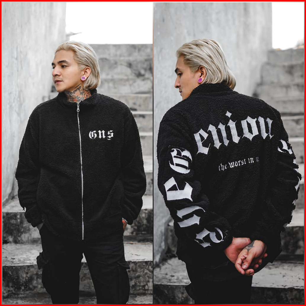 Jaket Sherpa Full Bordir - Jaket Bulu Tebal Original Genious