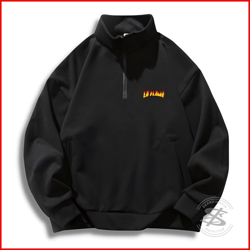 Half Zipper Sweater Crewneck New Arrival Skandinavia Lagi Hits 2023 Trend Korea Black Edition