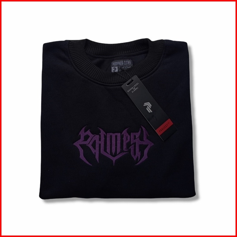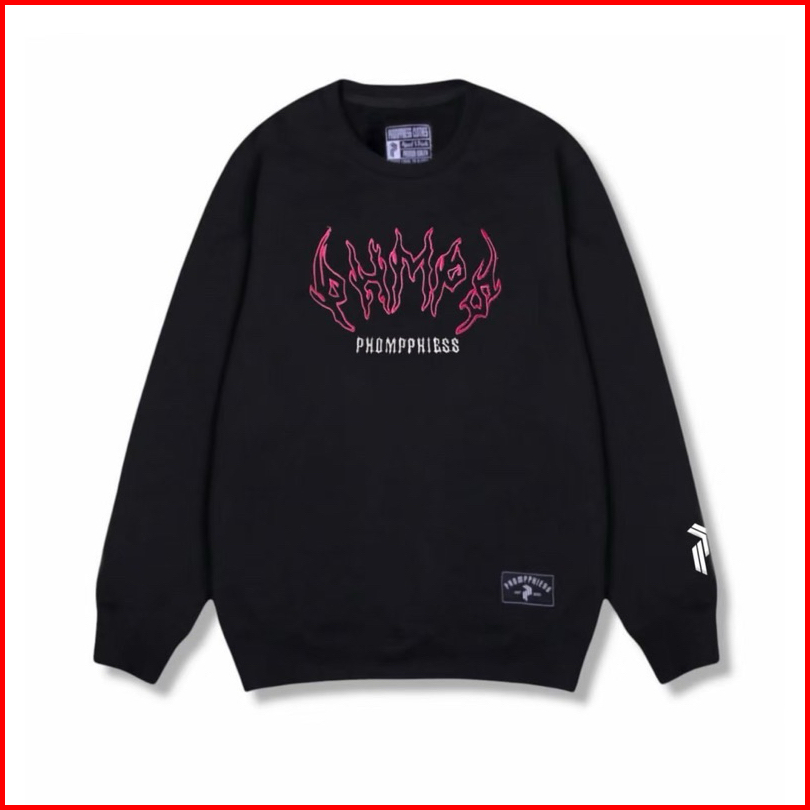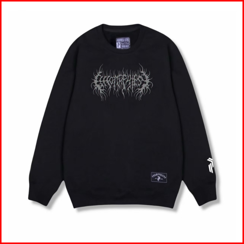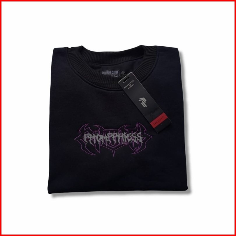 Phompphiess Crewneck Hitam Bordir Metal Sweater Hitam Metal Pria Wanita