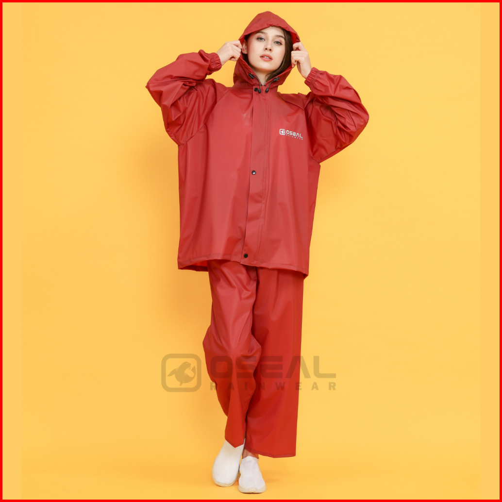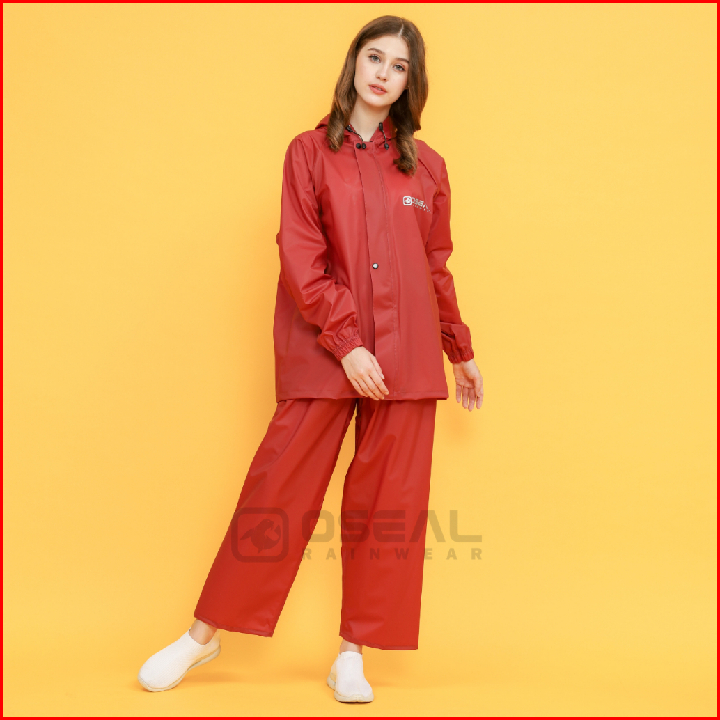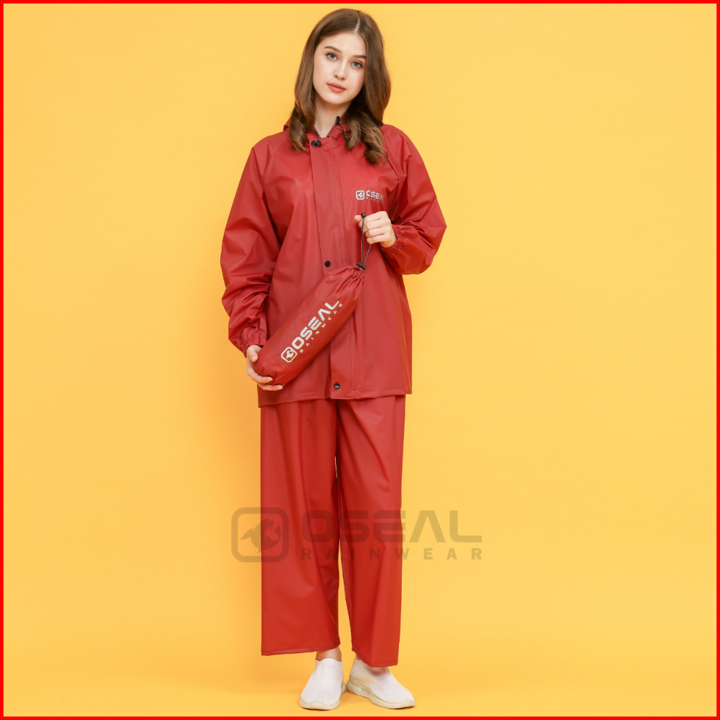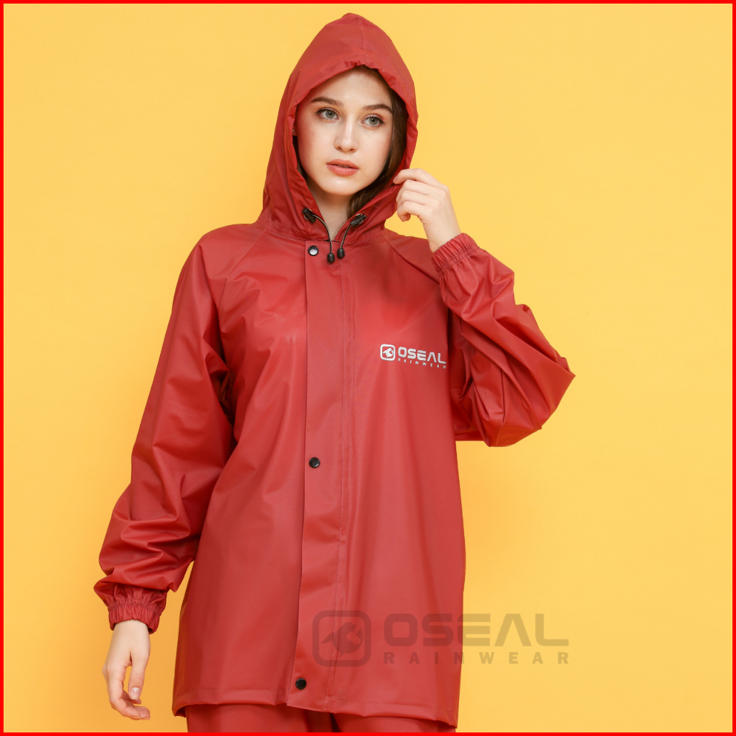 Oseal Jas Hujan Raincoat Mantol Pria Wanita Dewasa Full Seam Seal Press Maroon