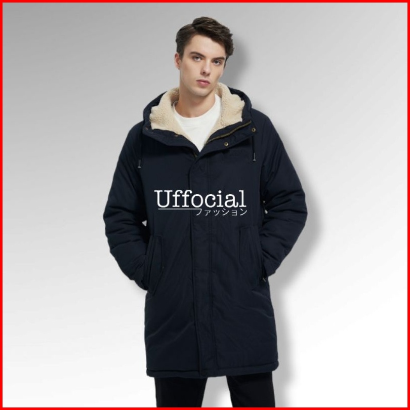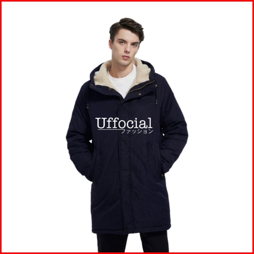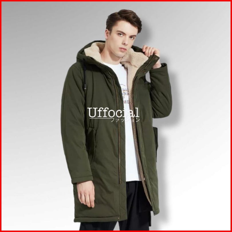 Jaket Musim Dingin Pria Berbulu Tebal Jaket Long Coat Pria Jaket Winter Jaket Hangat Jubah Pria Jaket Panjang