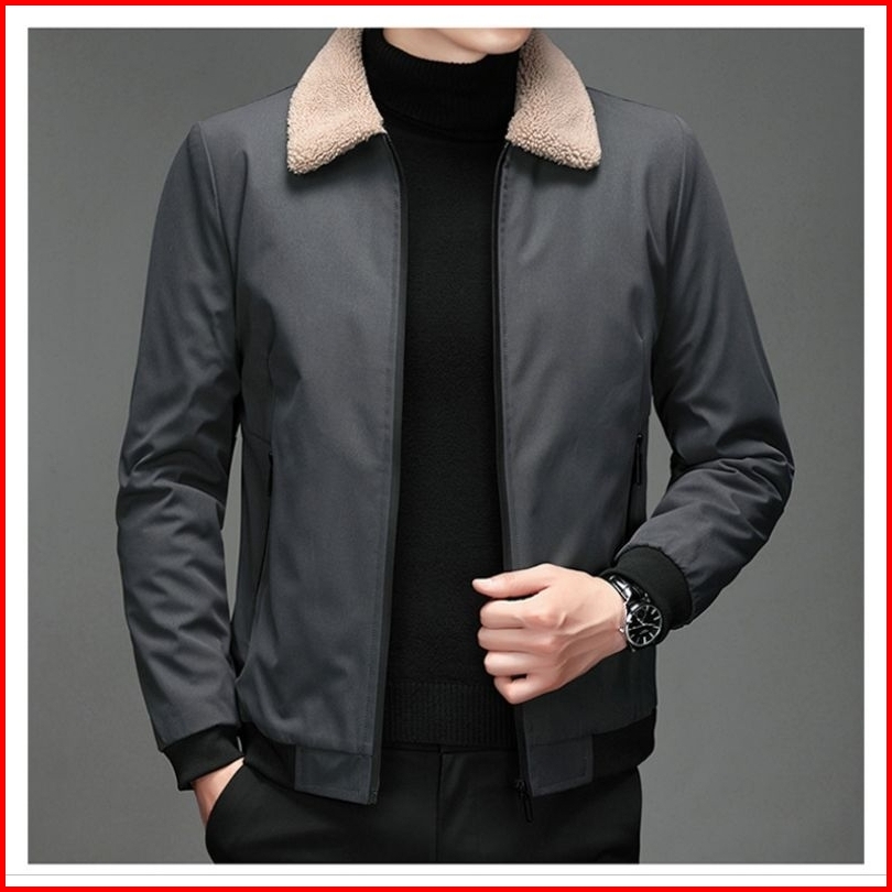 Jaket Casual Sherpa Jaket Musim Dingin Kerah Bulu Sherpa Tebal Dan Hangat Jaket Bomber Pria Terlaris