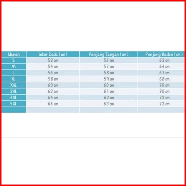 S, M, L, XL, XXL, 3XL, 4XL, 5XL