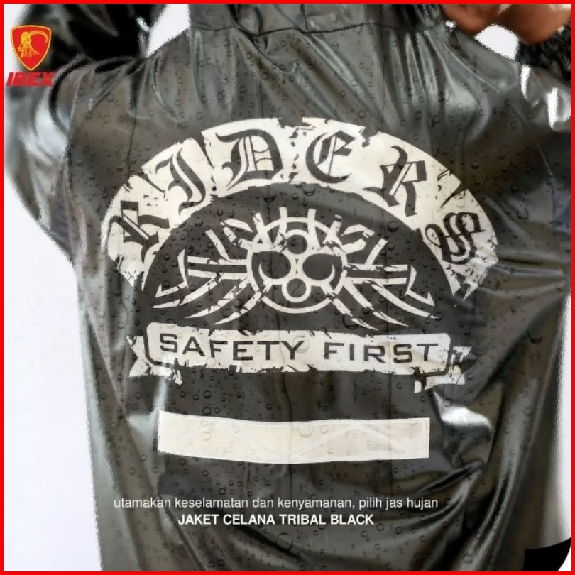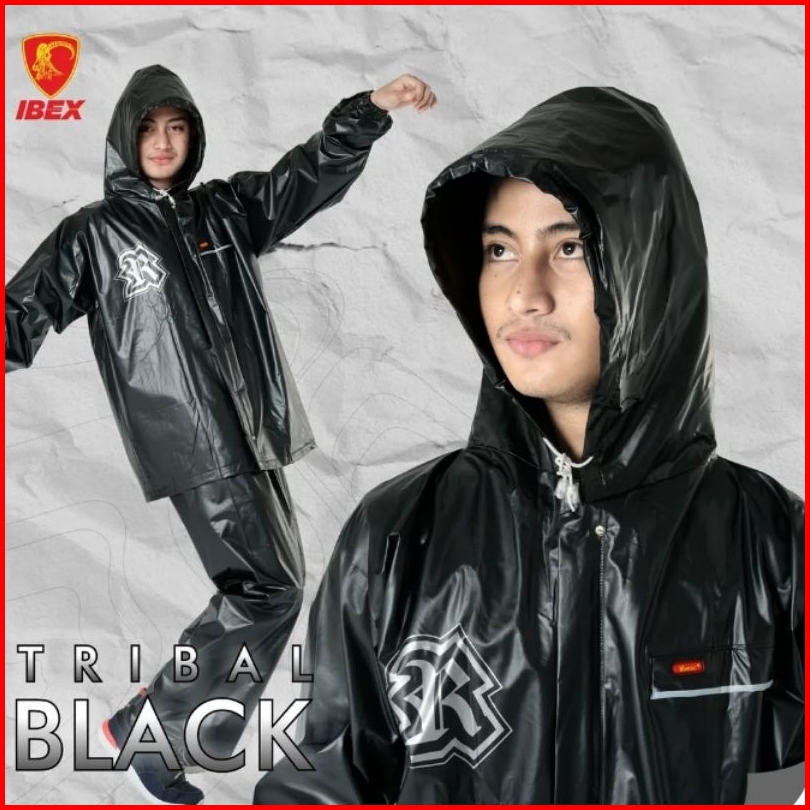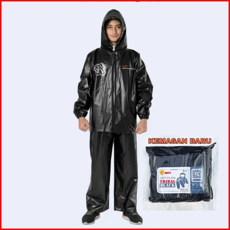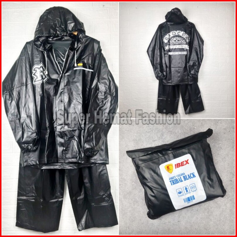Jas Hujan Mantel Ibex Tribal Black Baju Jaket Celana Stelan Setelan Ponco Poncho Hitam Pria Wanita Dewasa Unisex
