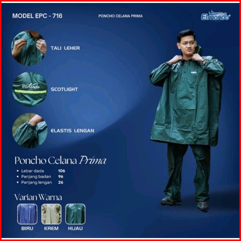 Jas Hujan Ponco Elmondo Prima - Mantel Ujan Dewasa Pria Dan Wanita