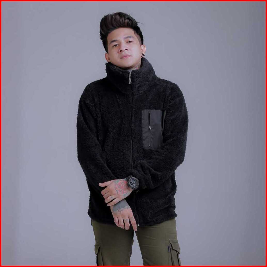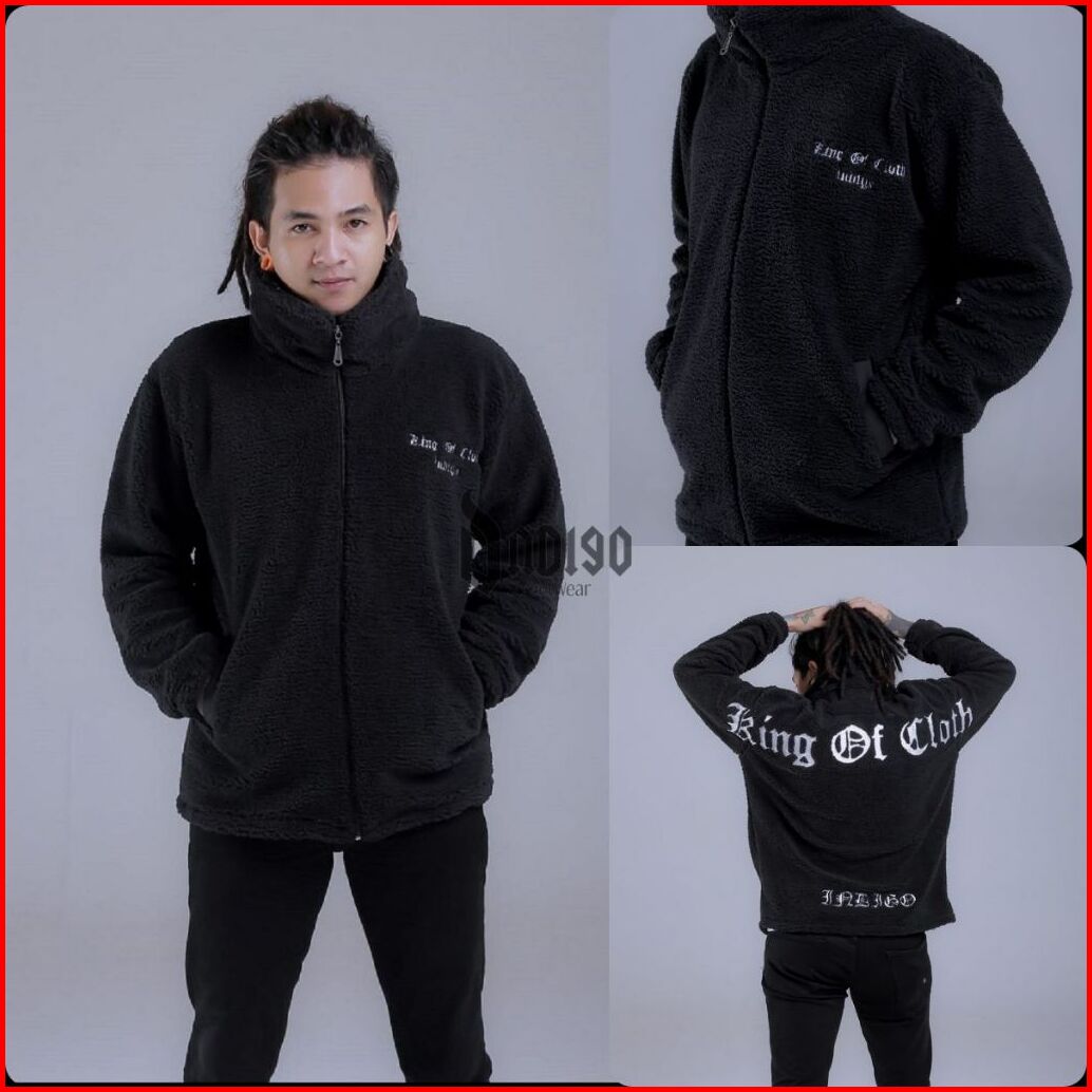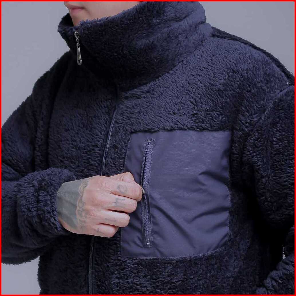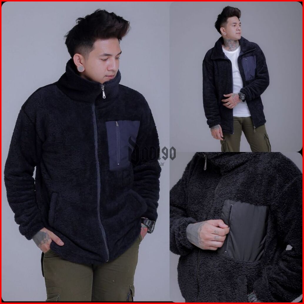 Indigo Jaket Sherpa Polos Pria Bulu Tebal Mantel Musim Dingin