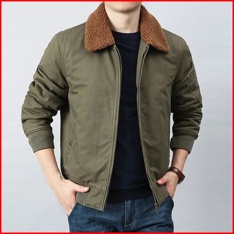 Jaket Bulu Pria Jket Bomber Pria Berbulu Tebal Jaket Pria Musim Dingin