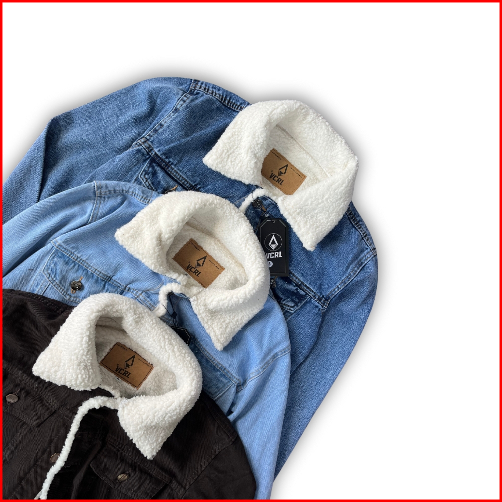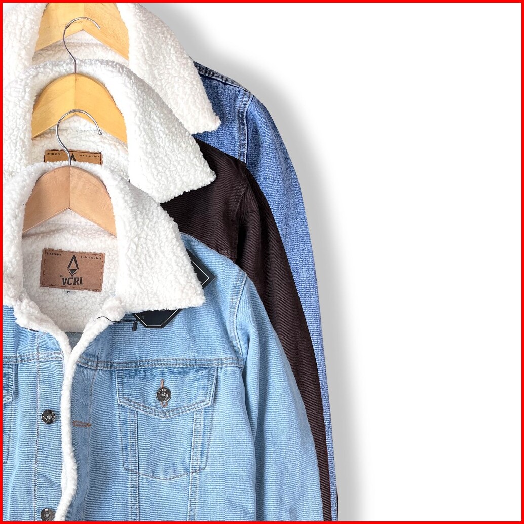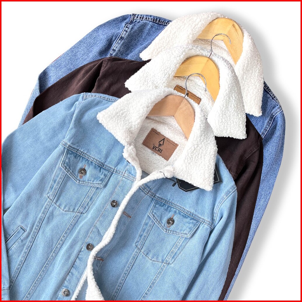 Vcrl- Jaket Jeans Pria Sherpa Denim Premium Bahan Tebal Model Korean Style Warna Bioblit