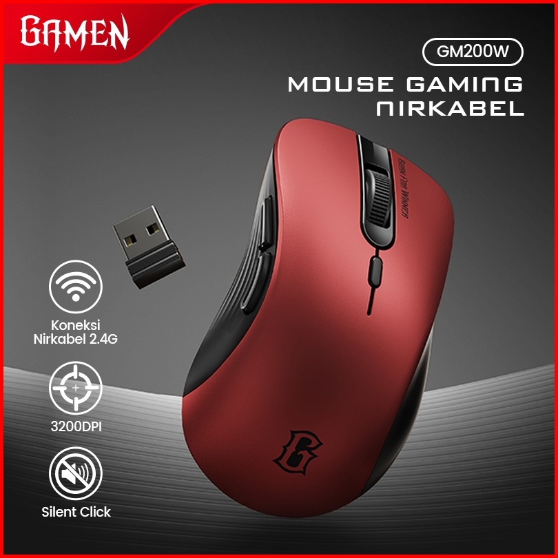 Gamen Mouse Wireless Gaming Silent Click Gm200w 2.4ghz 3200 Dpi Ergonomic Design 4 Dpi Levels Up To 5 Million Clicks Mou