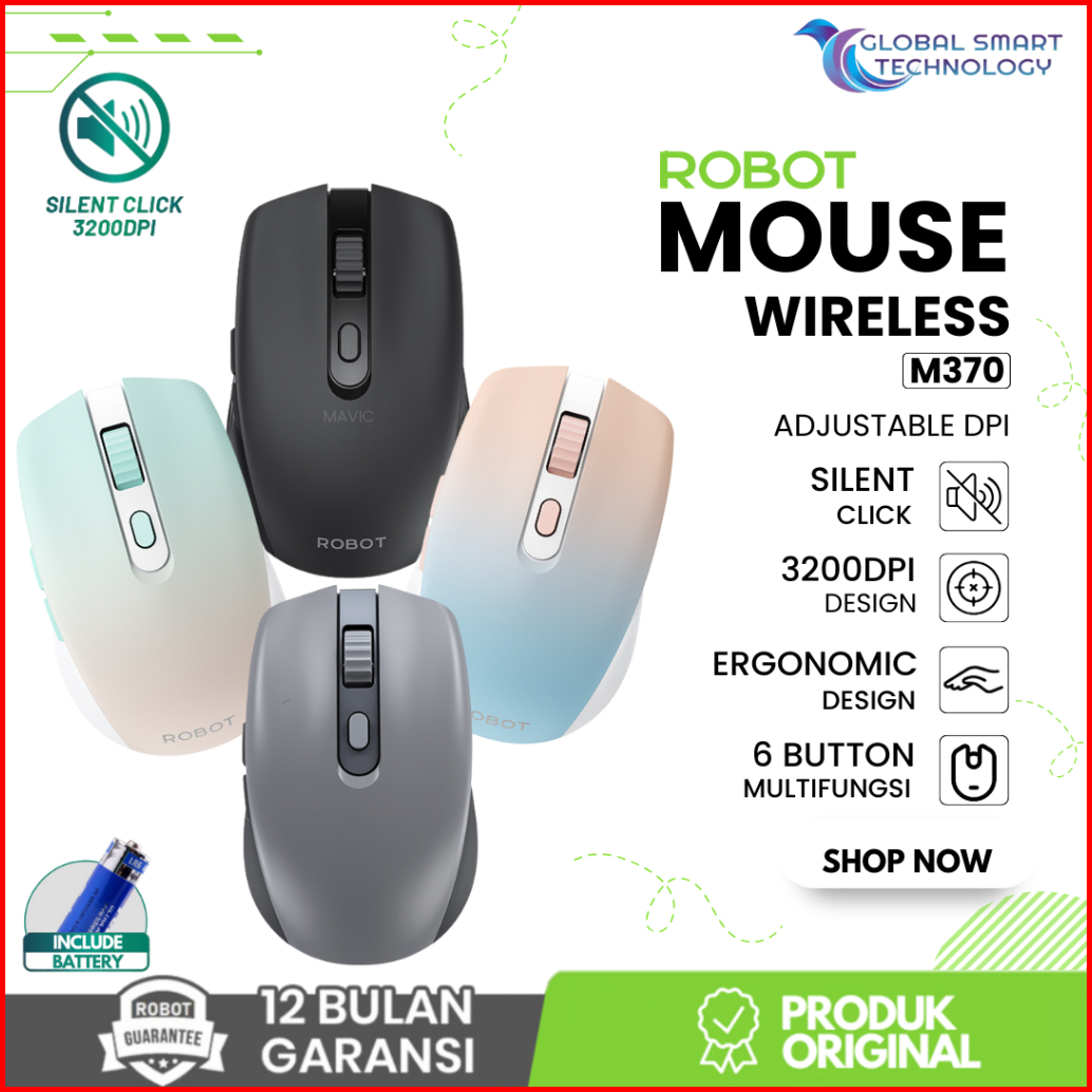 Robot M370 Mouse Wireless 2.4ghz Silent Optical 3200dpi Dengan Receiver Usb Untuk Pc Laptop Original - Garansi Resmi 1 T
