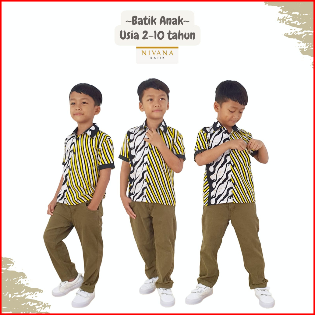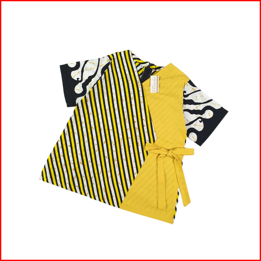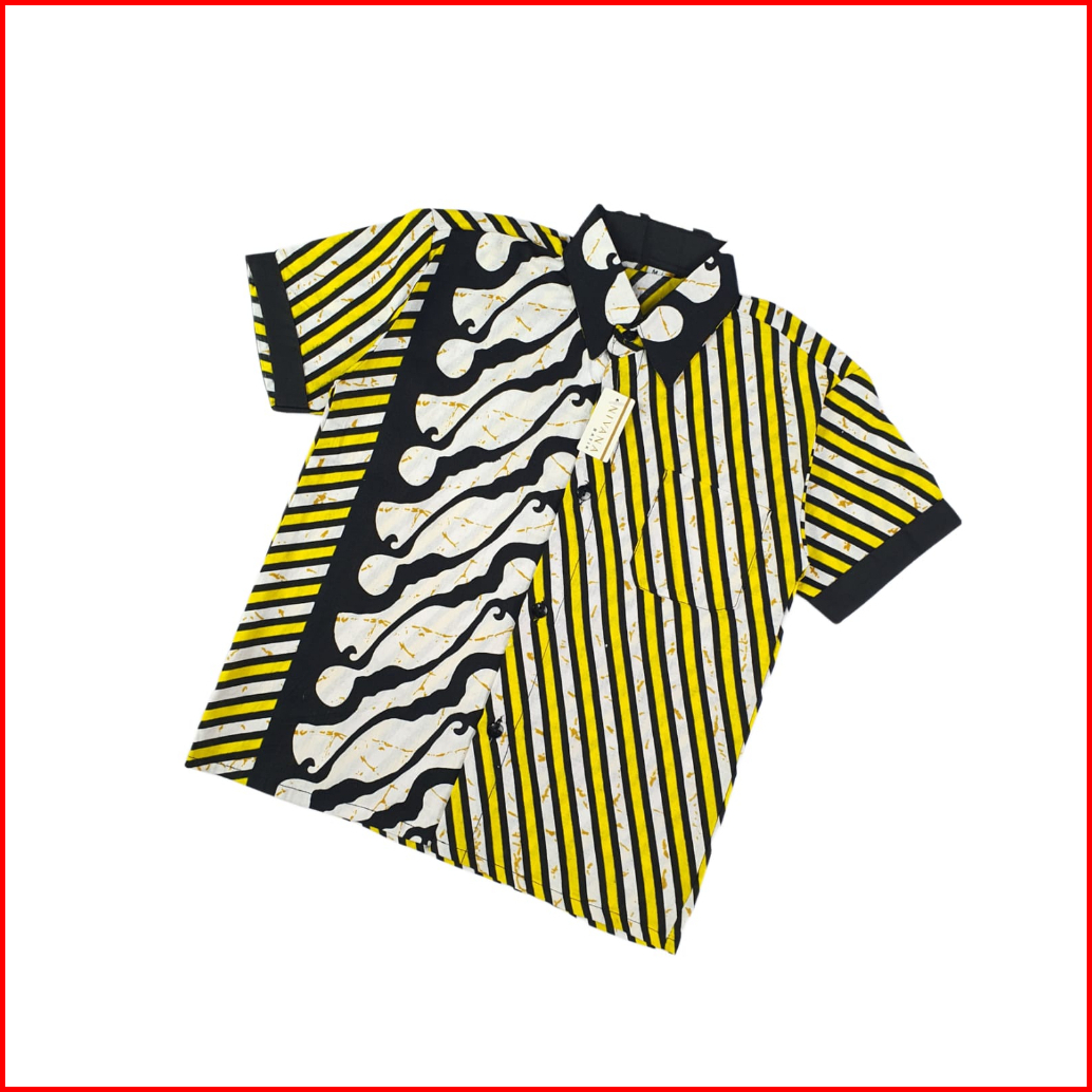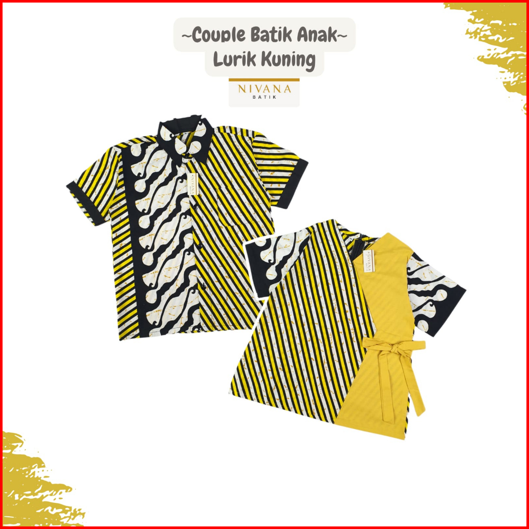 Batik Anak Couple Cewek Cowok Kemeja Blus Kombinasi Amyna Lurik Kuning