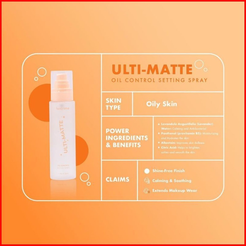 Luxcrime Glow-getter Dewy Ulti-matte Oil Control Setting Spray Full 150ml Travel 50ml
