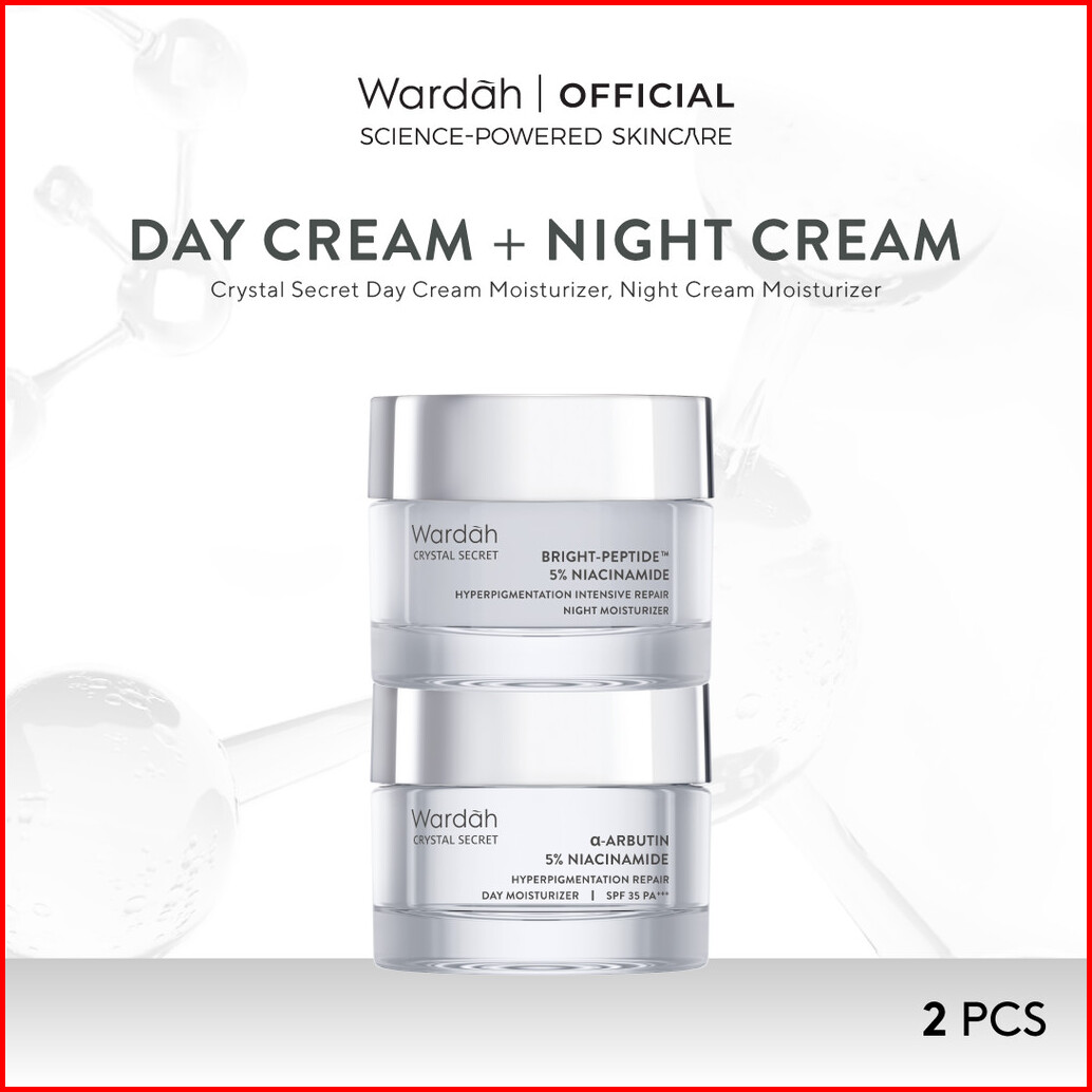 Wardah Crystal Secret Paket Brightening Day Cream Night Cream 30g - Mencerahkan Melembabkan Melindungi Dan Meratakan War