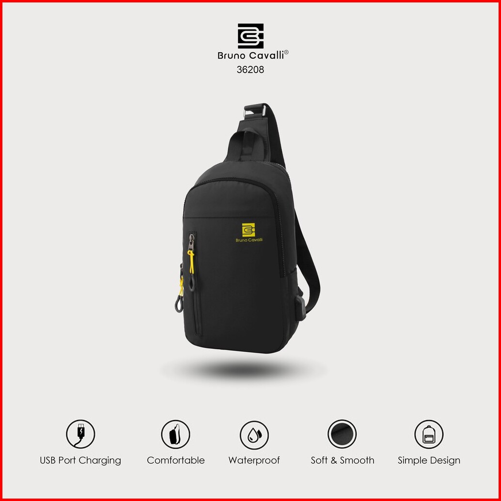 Bruno Cavalli Gravity 36208 Tas Selempang Pria Wanita Anti Air - Light And Strong Material With Usb Port
