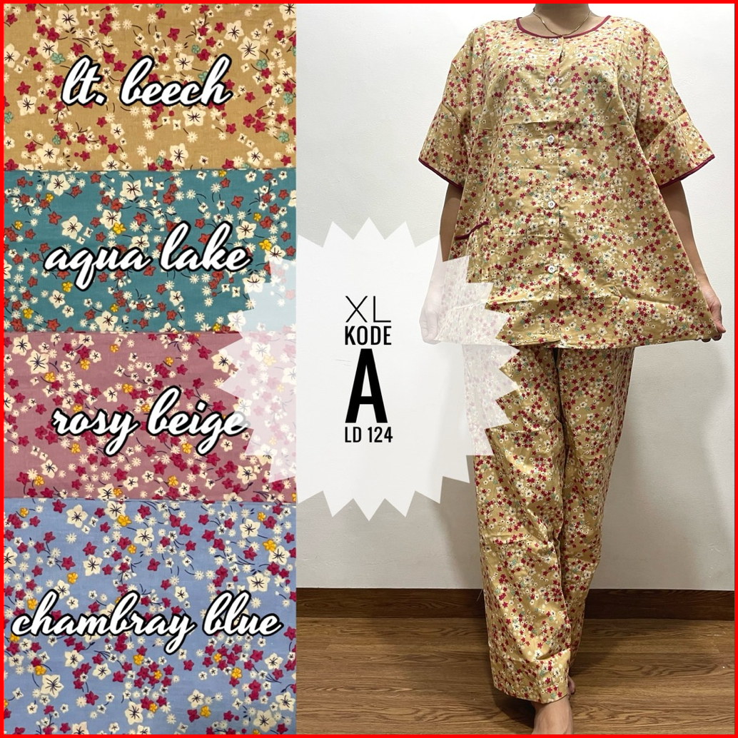 Piyama Cp Big Jumbo Size Xl Ld 122 - 126 Katun Lokal Pretty Girl Busui Bumil