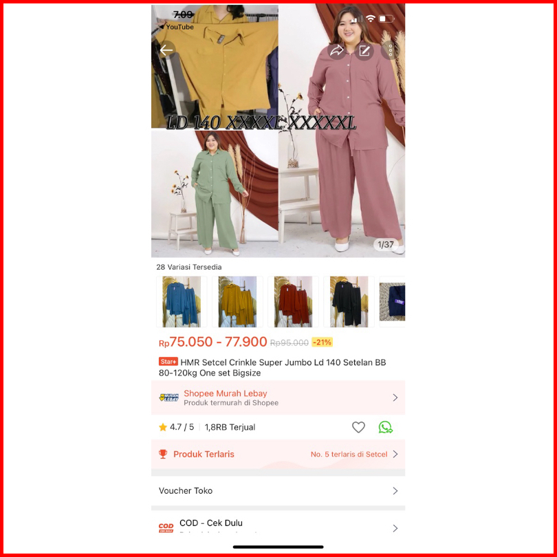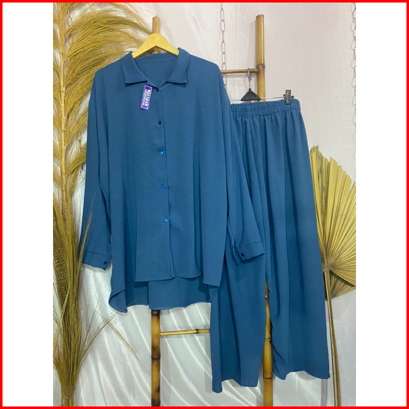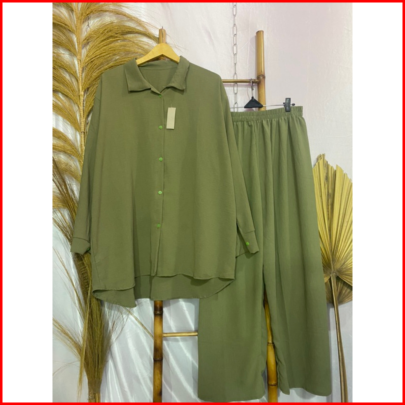 Denim, Maron, Sage, Kuninh, Pink, Bata, Hitam, Dusty Pink, Navi, Abu, Coksu, Hijau Tua, Moca, Tortilla, Toska, Hijau lemon, Purple, Lemon, Salem, Dusty Purple, Pendek hitam, Pendek sage, Pendek lemon, Pendek army, Pendek kuning, Pendek maron, Pendek denim, Light beige, Atasan random