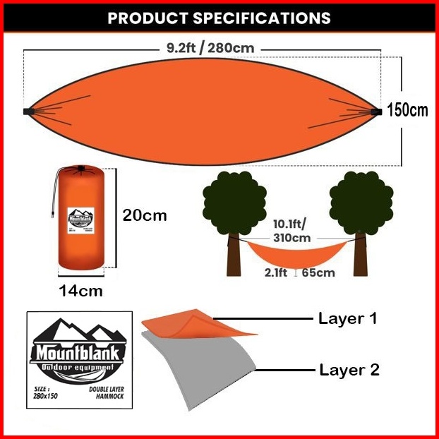 Hammock D2l Bolak Balik Double Layer Ayunan 2 Dua Lapis Mountblank 240x150