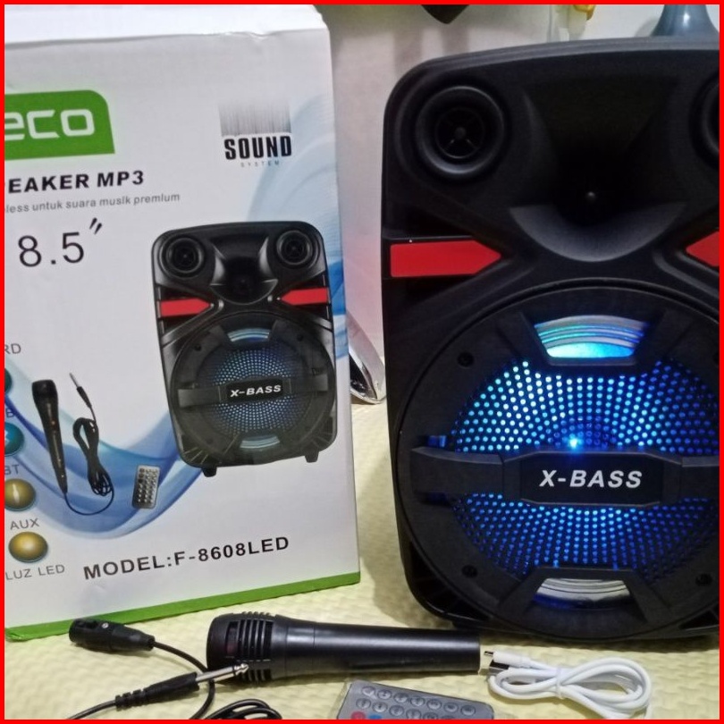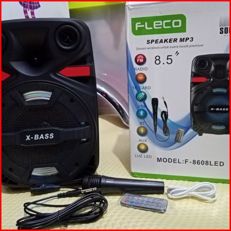 Speaker Bluetooth Protable 8 5 Inch Fleco F-8608 Plus Mic Karaoke Super Bass Speaker Salon Aktif F-8608 Speaker Karaoke
