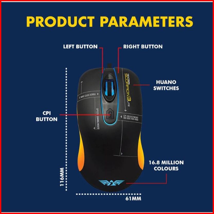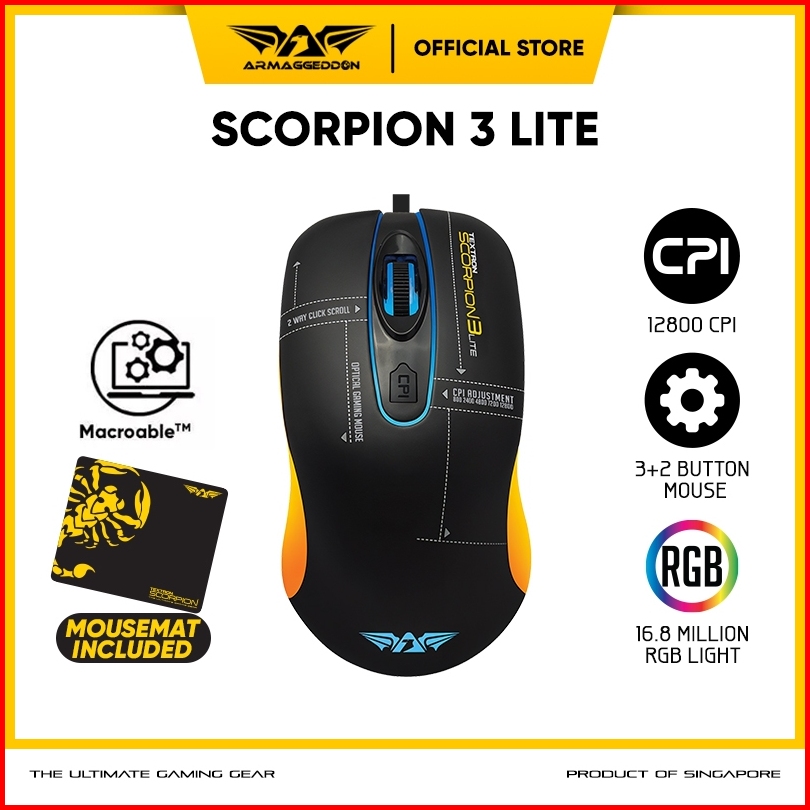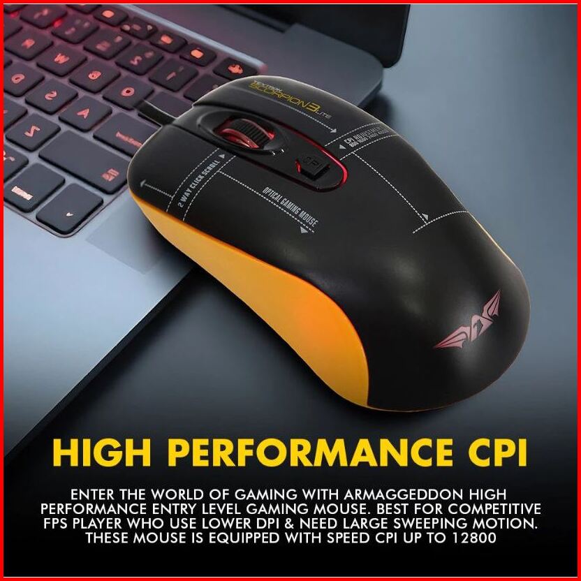 Mouse Gaming Armaggeddon Scorpion 3 12800 Cpi With Huano Switch Free Mousepad Garansi 2 Tahun