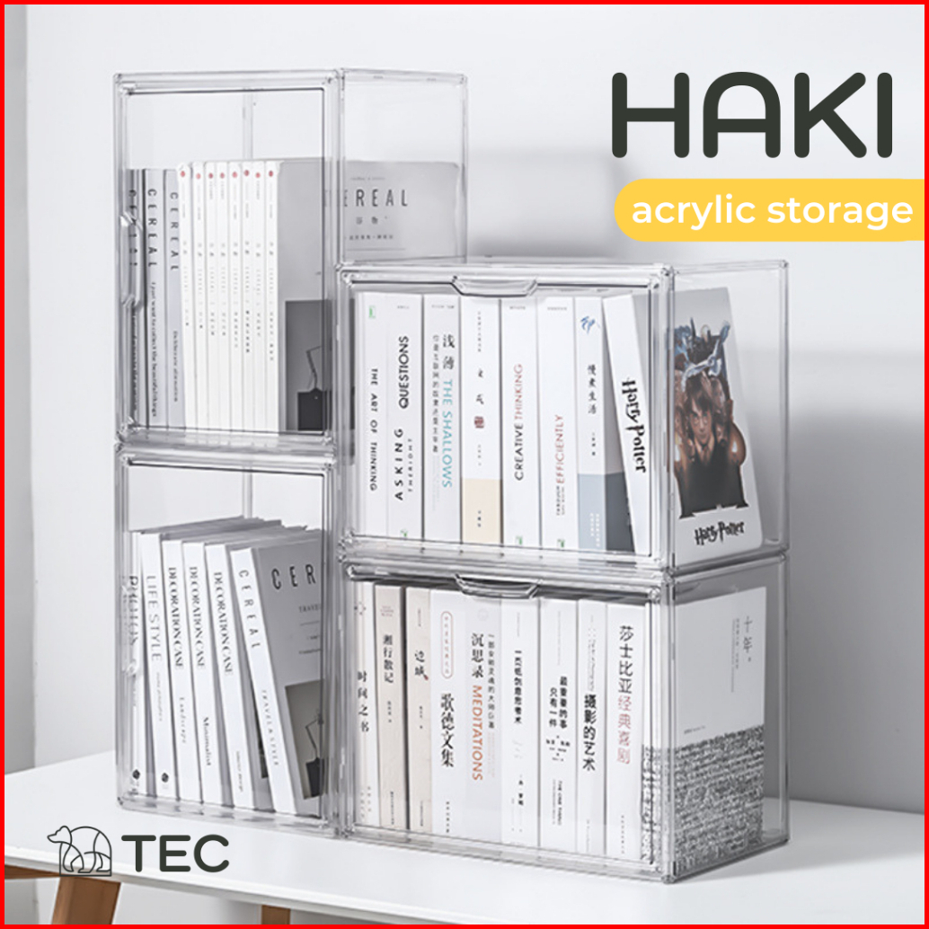 Kotak Tempat Penyimpanan Tec Haki Transparent Acrylic Book Kotak Display Action Figure Display Box Clear Kosmetik Sekat