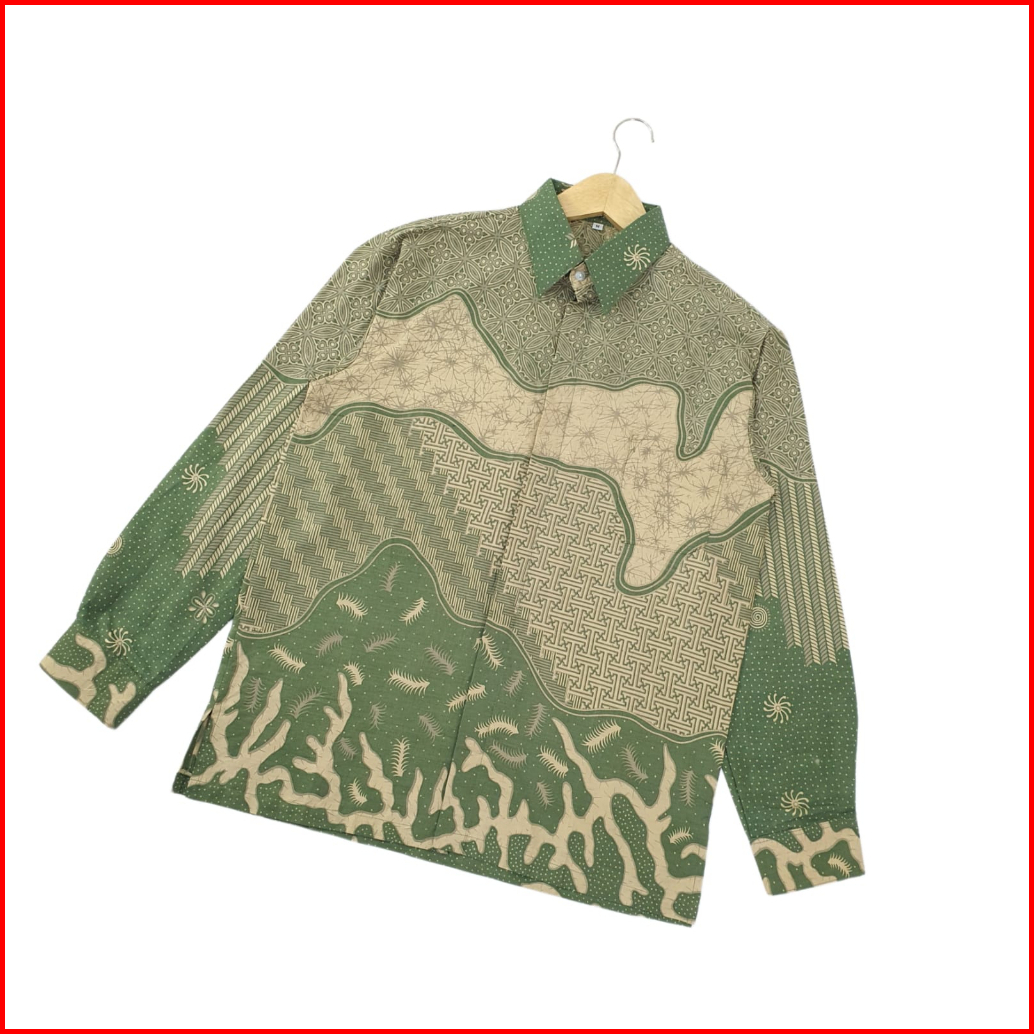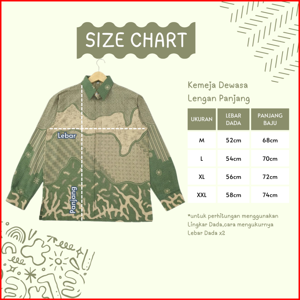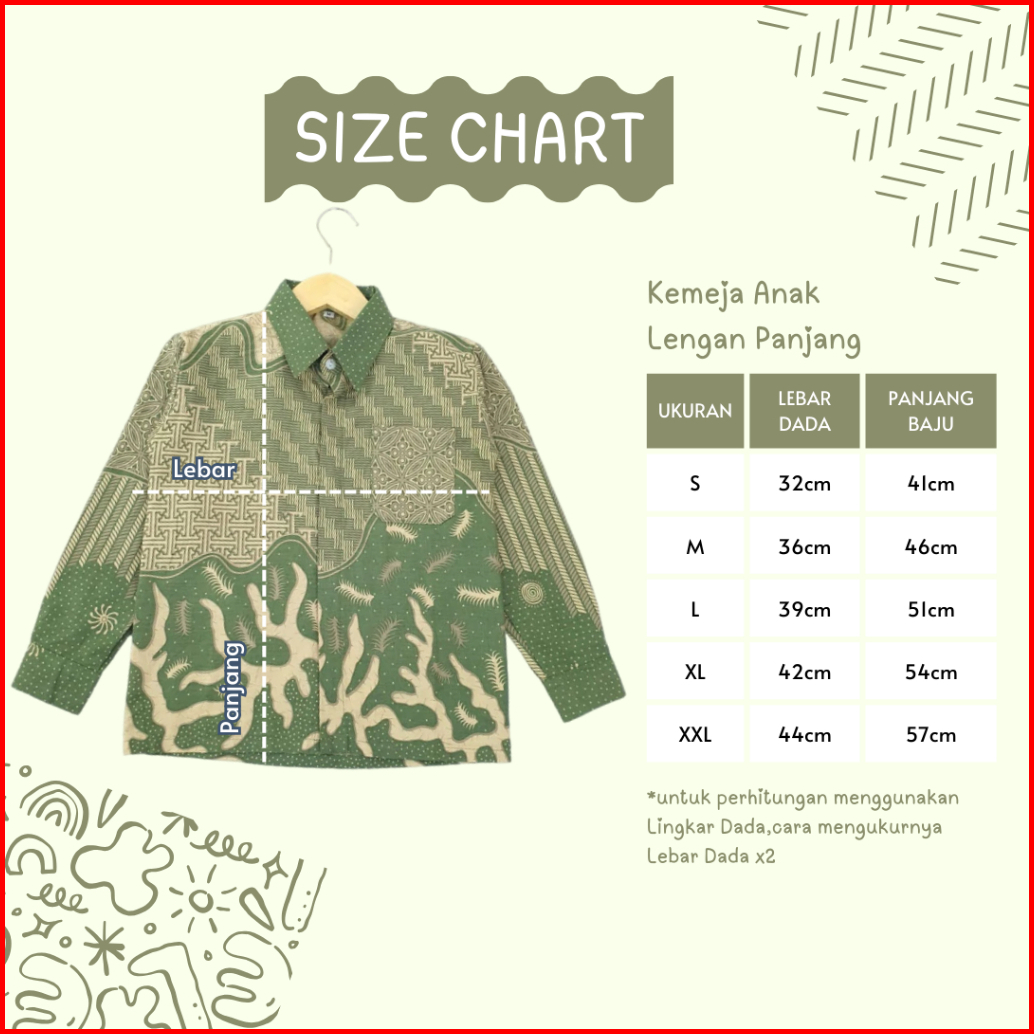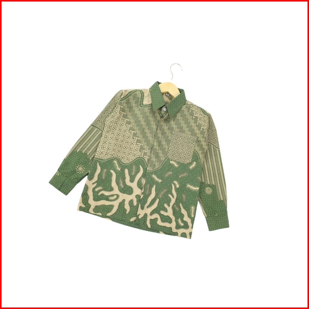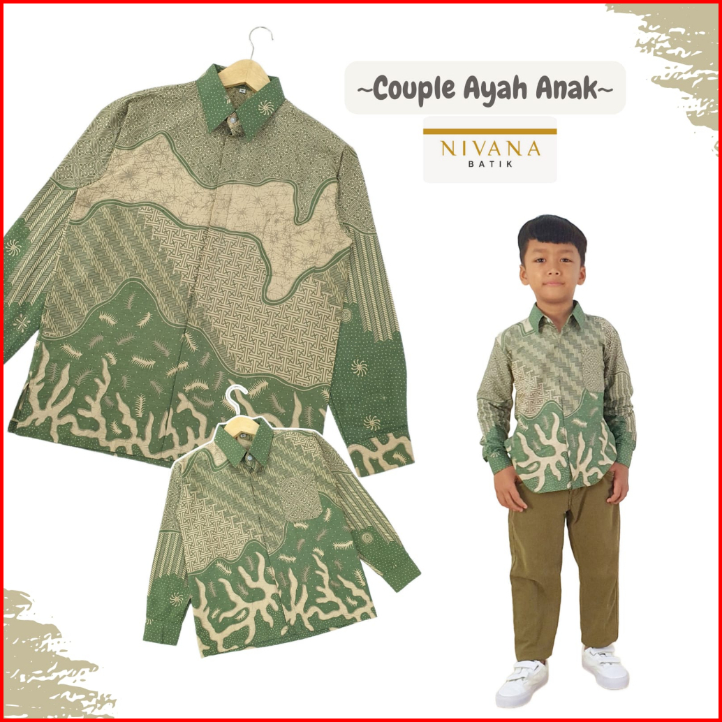 Couple Ayah Anak Batik Kemeja Panjang Inara Hijau Lumut
