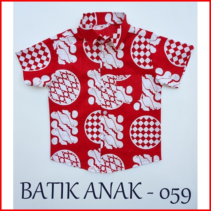 Kemeja Batik Anak Katun Primisima 059 Merah Lengan Pendek