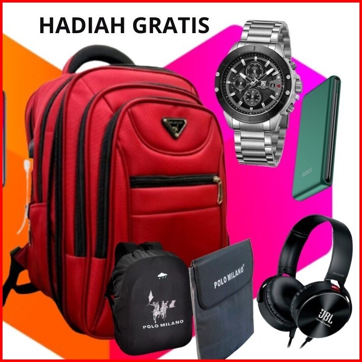 Free 3 Hadiah Gratis Polo Milano 20 Inch Ransel Kerja Tas Sekolah Kunci Usb Port 0riginal Tas Polo Pria Wanita Tas Polo