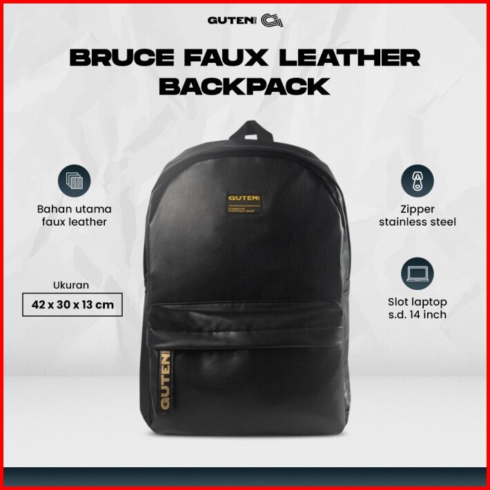 Guteninc Tas Ransel Leather Backpack Bruce Faux Black