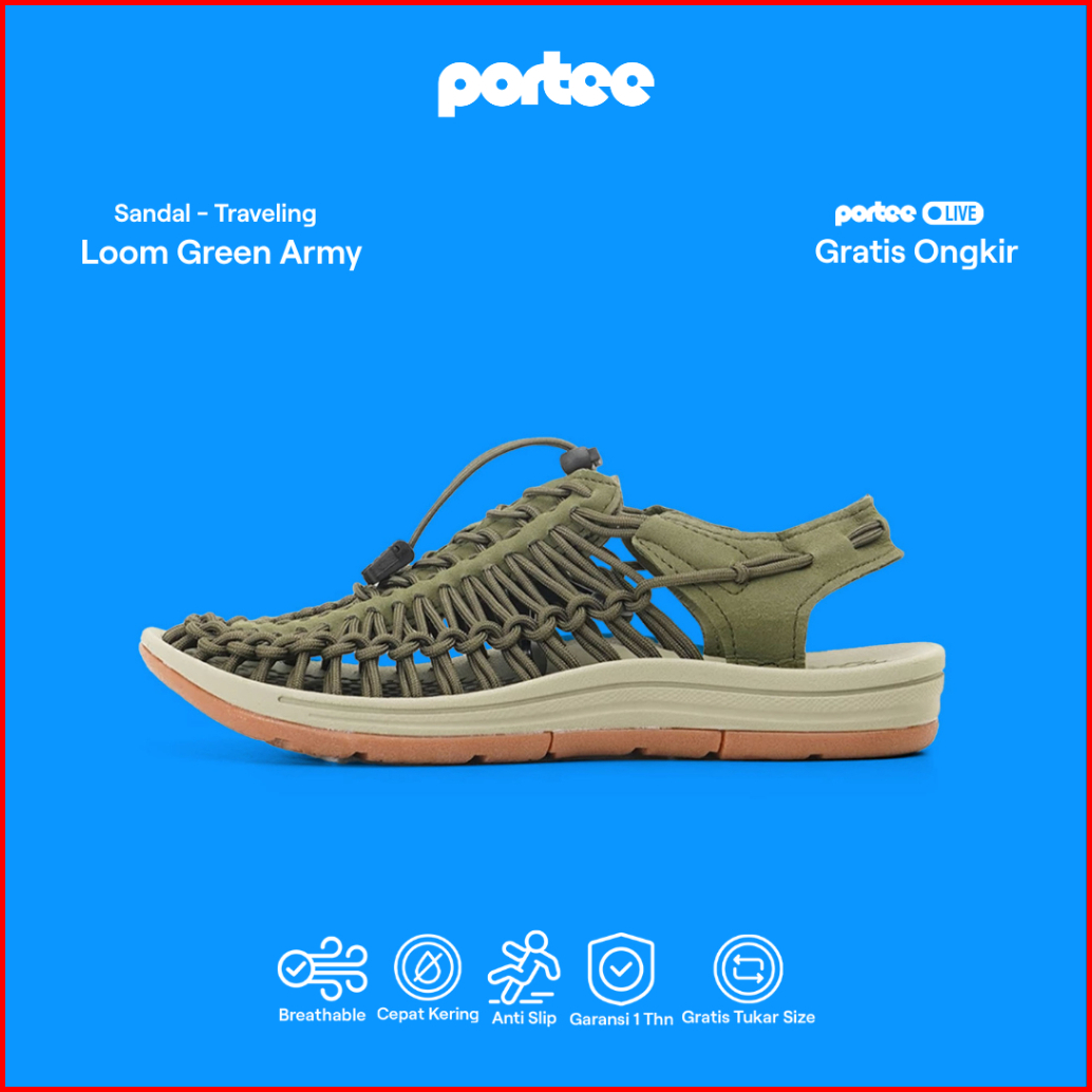 Sandal Pria Portee Loom Army Green Traveling Anti Slip Ringan Tracking Outdoor Men Sandal