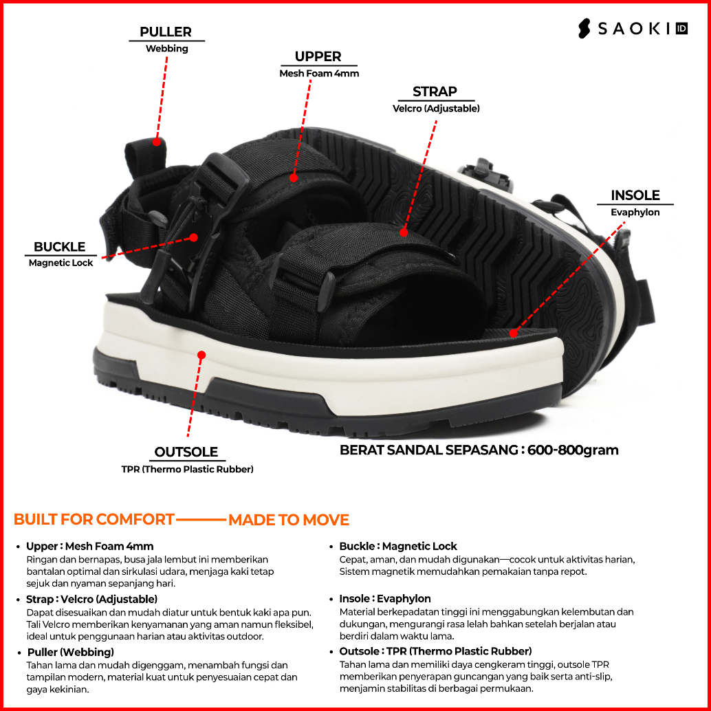 Saoki - Sandal Slop Pria Traveling Sendal Gunung Wanita Slip On Warden Black