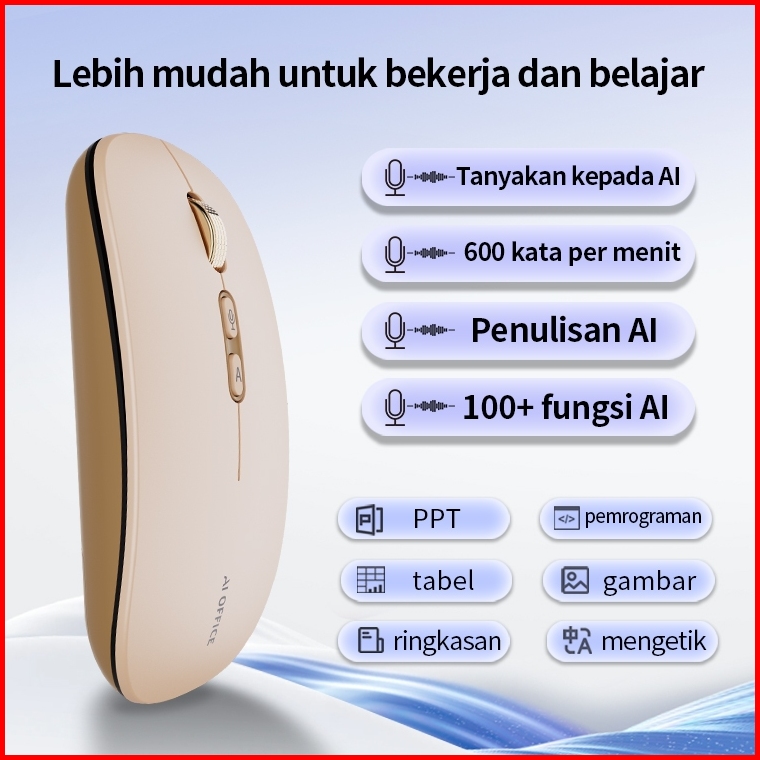 Miclink M108 Mouse Ai Voice To Text Translate 120 Bahasa Wireless Bluetooth Rechargeable Silent