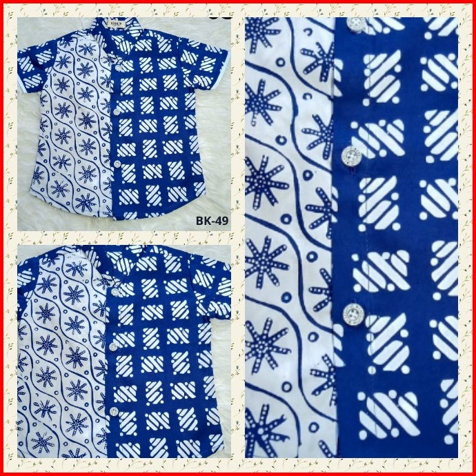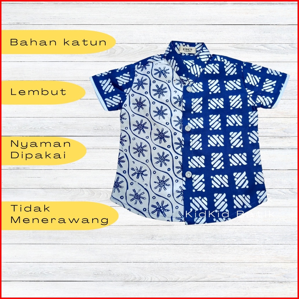 Baju Batik Anak Laki Kemeja Batik Anak Kombinasi Hem Biru Modern Kekinian Usia 1-14 Tahun