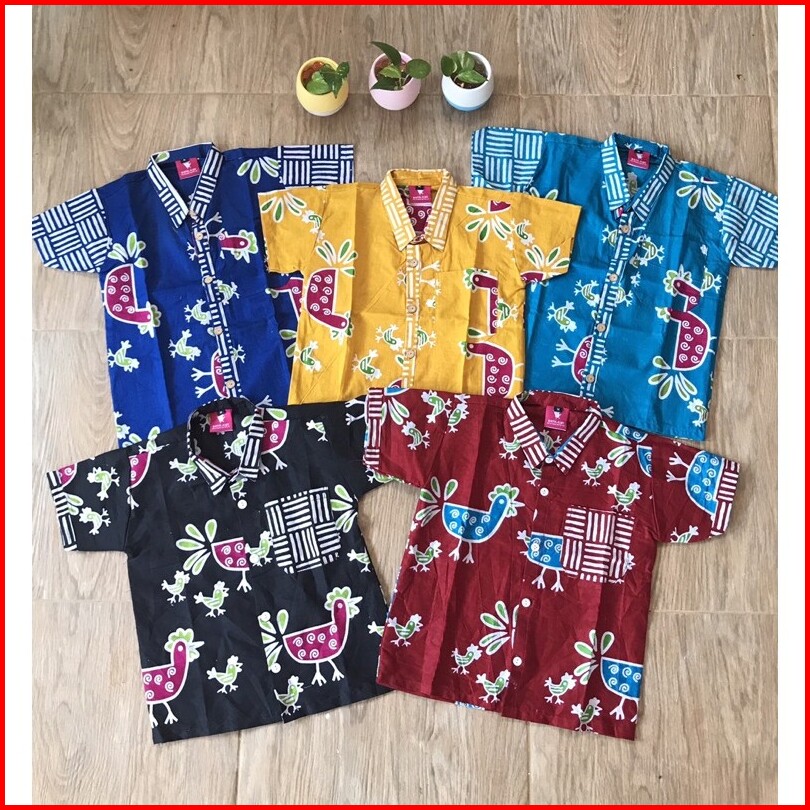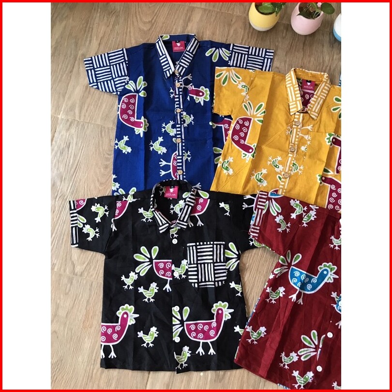 Kemeja Batik Anak Motif Ayam Navy Merah Kuning Toska Hitam Batik Anak Laki Halus Dan Nyaman Dipakai