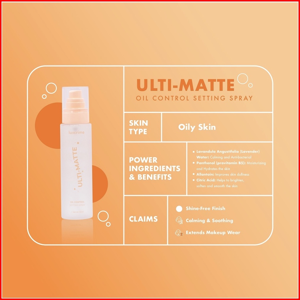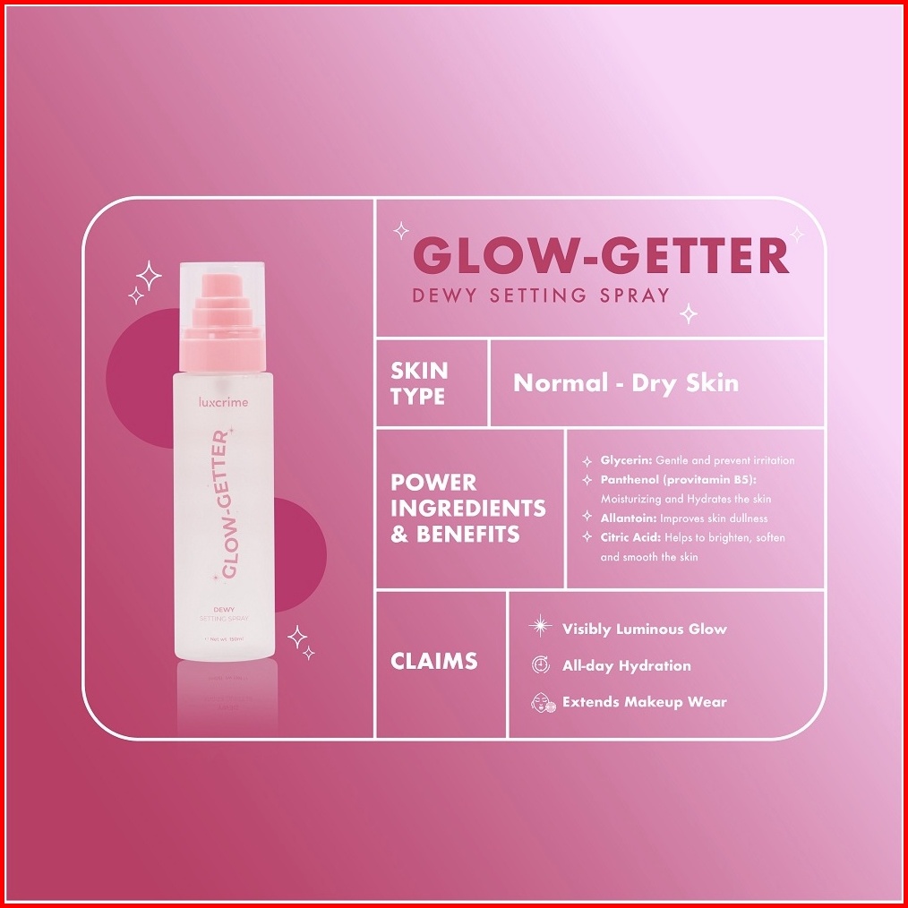 Luxcrime Glow-getter Dewy Setting Spray Ulti-matte Oil Control Setting Spray 50ml 150ml