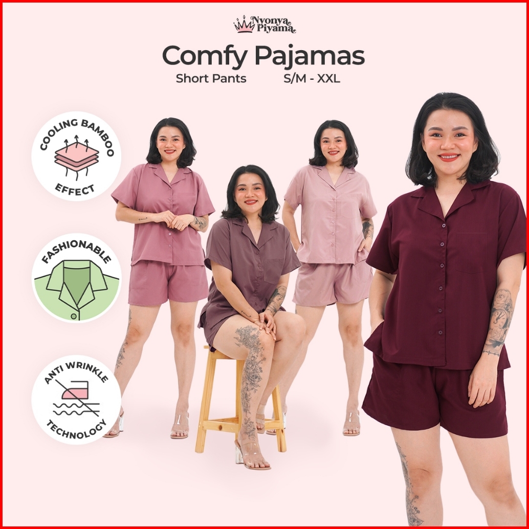 Best Seller Nyonya Piyama Poly Bamboo Set Celana Pendek Polos Comfy Vol 1